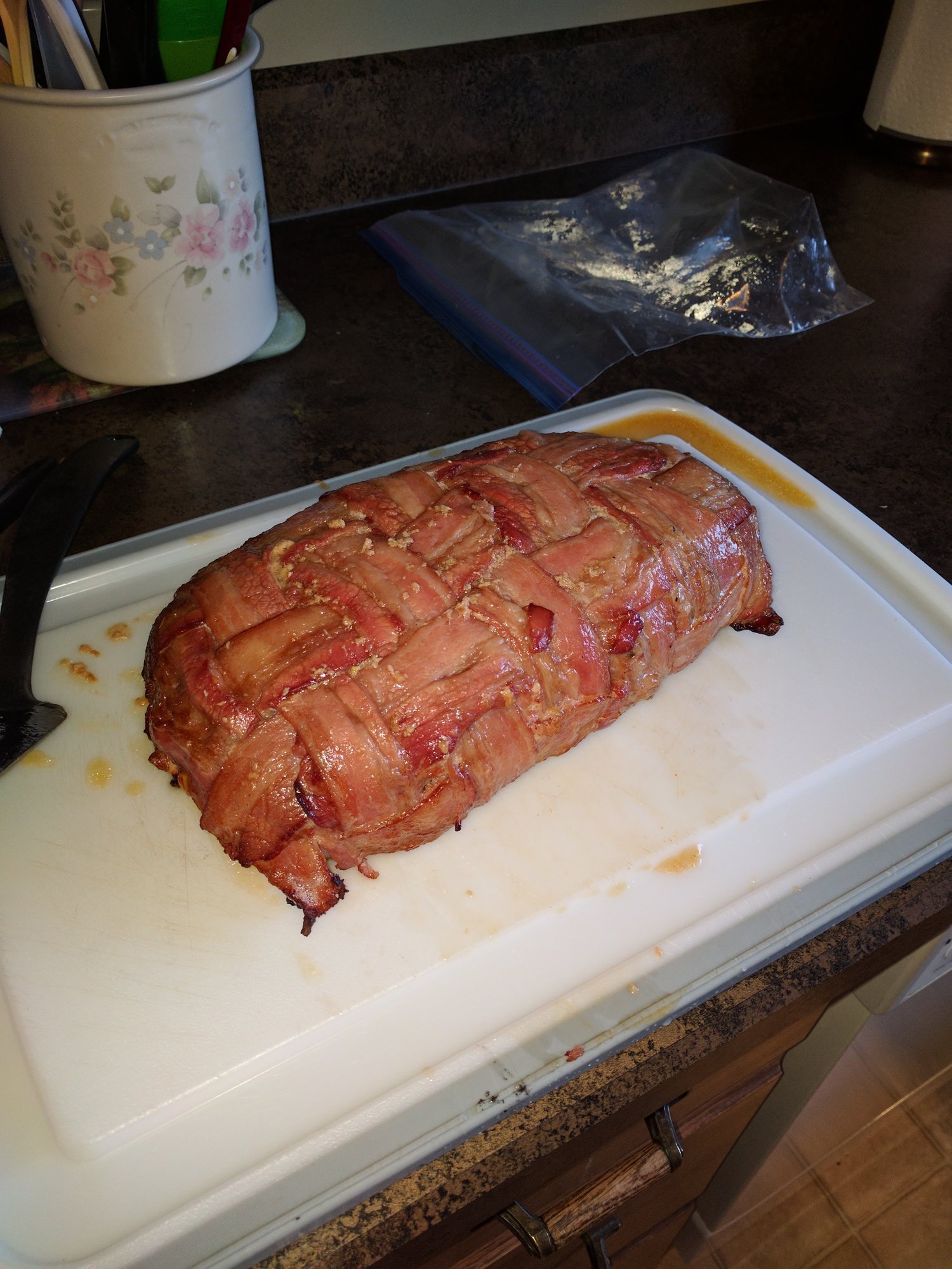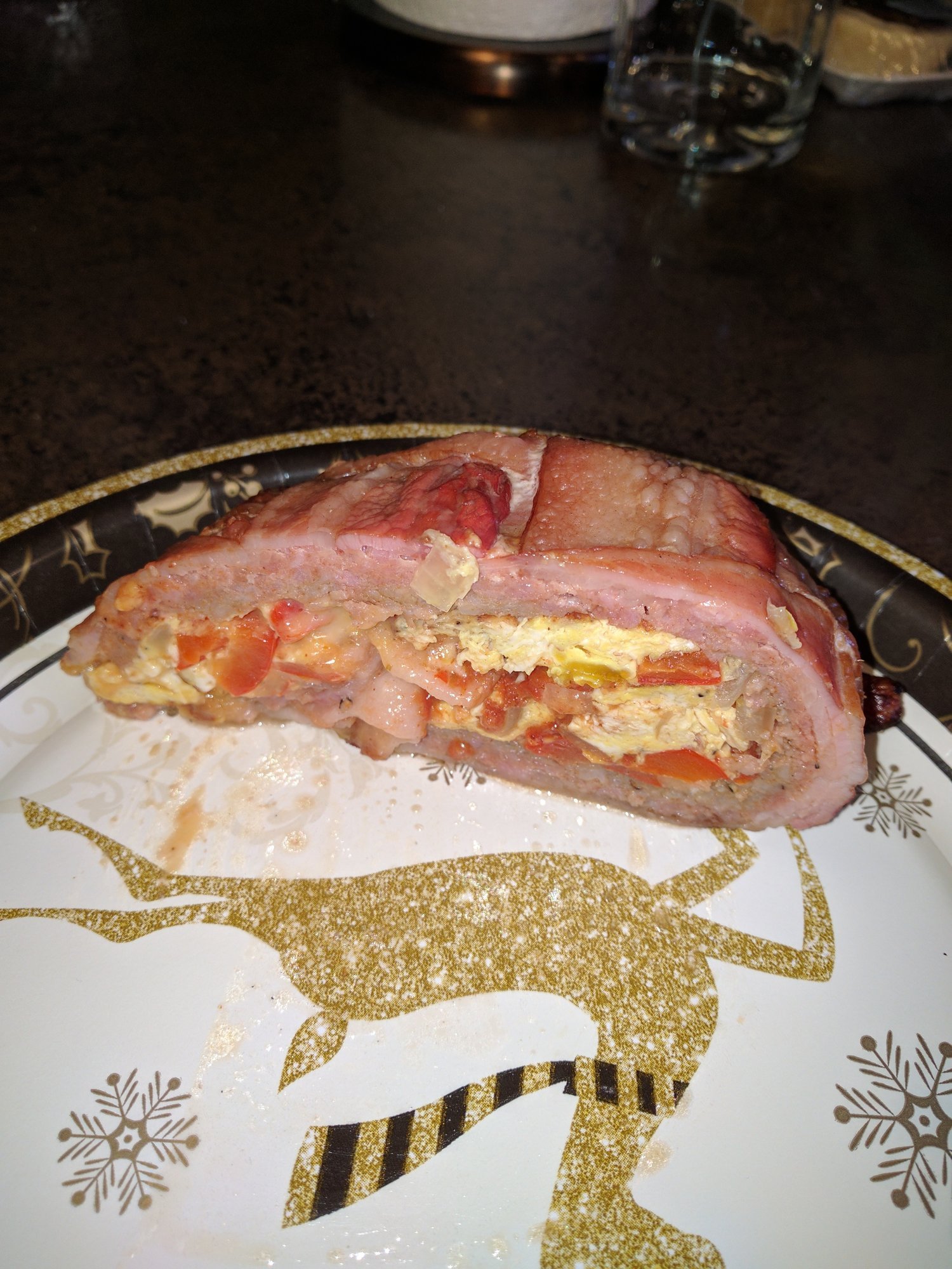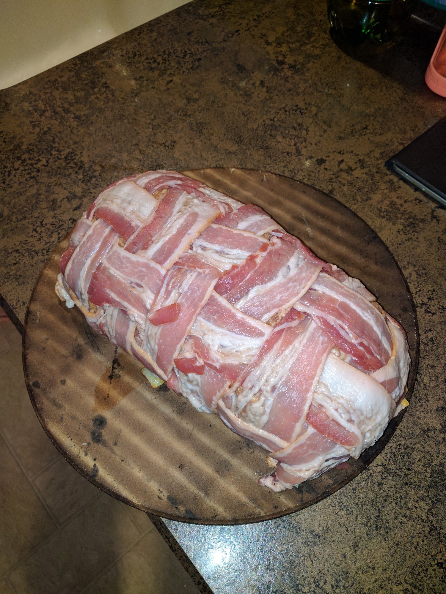 Made my first breakfast fatty. Turned out pretty good. I made the sausage part a little thick, should have put more salsa in and the bacon weave wasnt very toit. But still people enjoyed it.