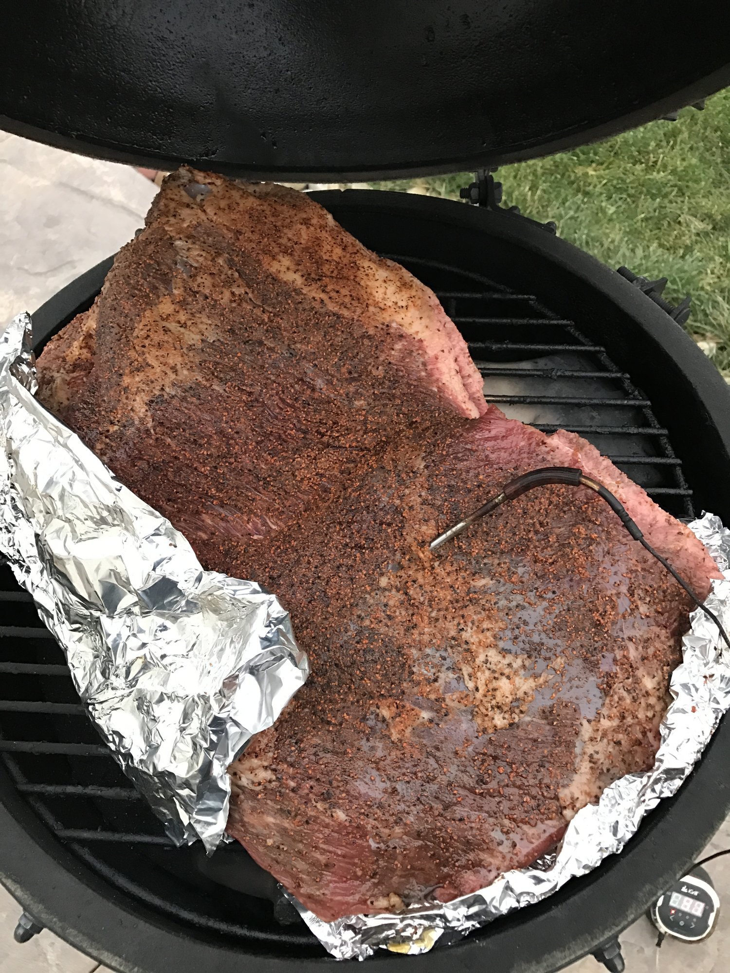• Quick note as well: ended up pulling the brisket off at 197 degrees, and then FTC for a couple hours before serving.