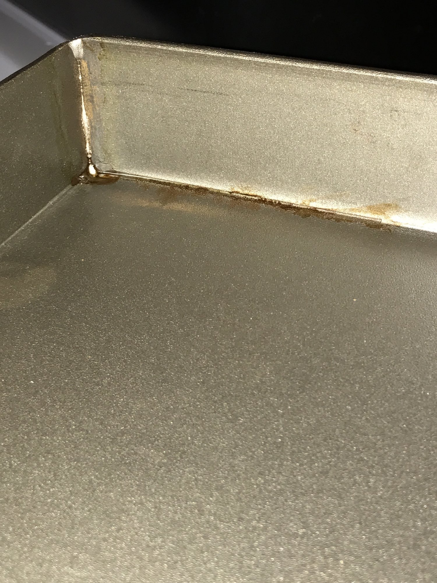 Soap and water didn't get the sticky stuff out of the corner, but I used a few wet wipes and it came off. Seasoning it now. Using flaxseed oil (aware of the flaking issues). Here it is after the first round. Onions and oil for the next round and then bacon for round three.