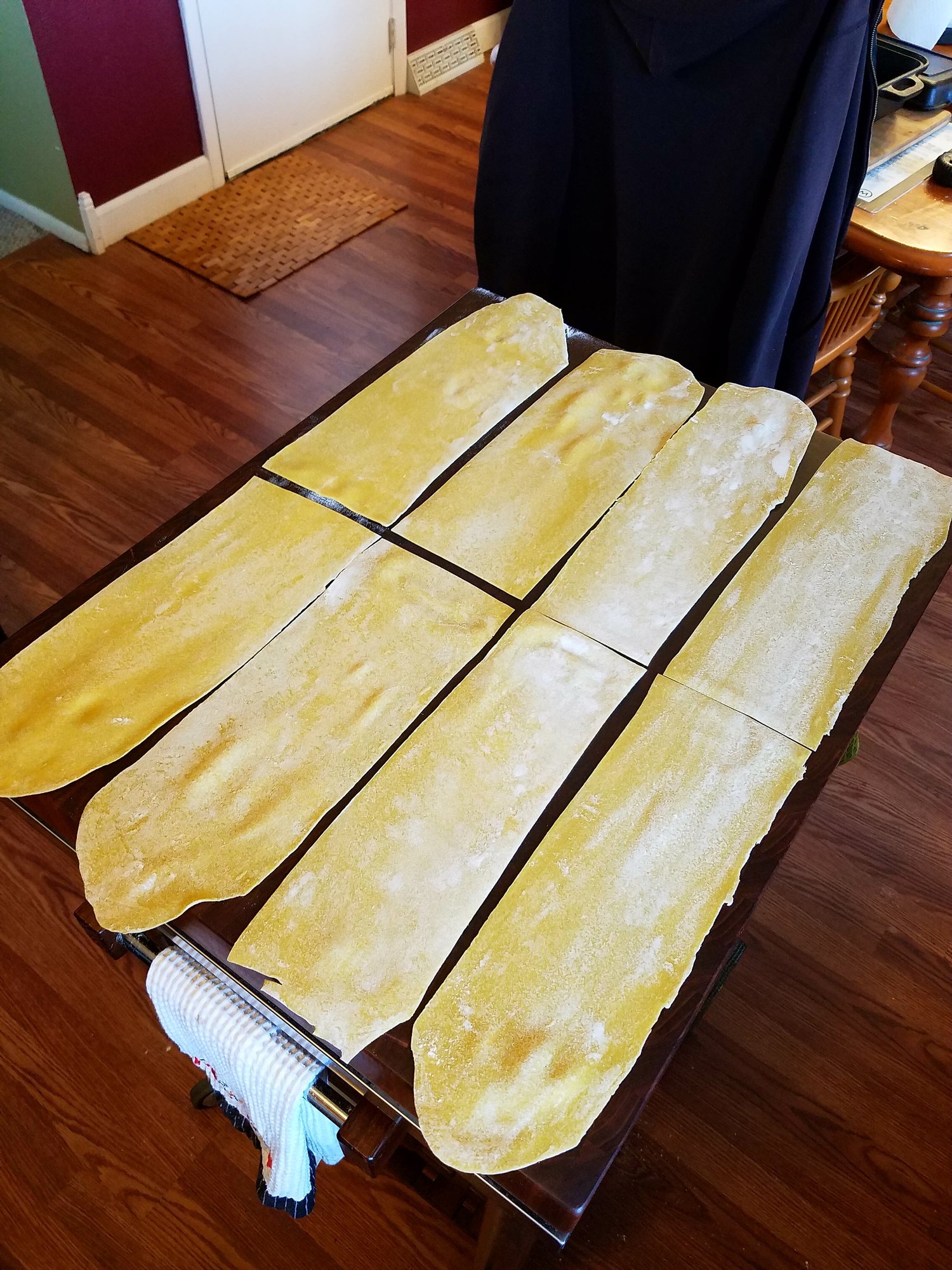 I like 4 for egg noodles cut thicker with a knife, 4 for fettuccini, and 5 for lasagna and ravioli.