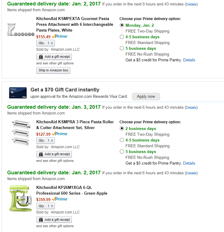 I have the KitchenAid pasta rollers, use them a couple times a month during the winter (love homemade pasta).  I'm also amazed at how overpriced the two Macey's ads are on this thread, how can they stay in business in this intranetz age??