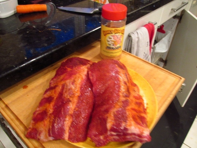 Heavy dose of Meat Church "Honey Hog BBQ" rub.