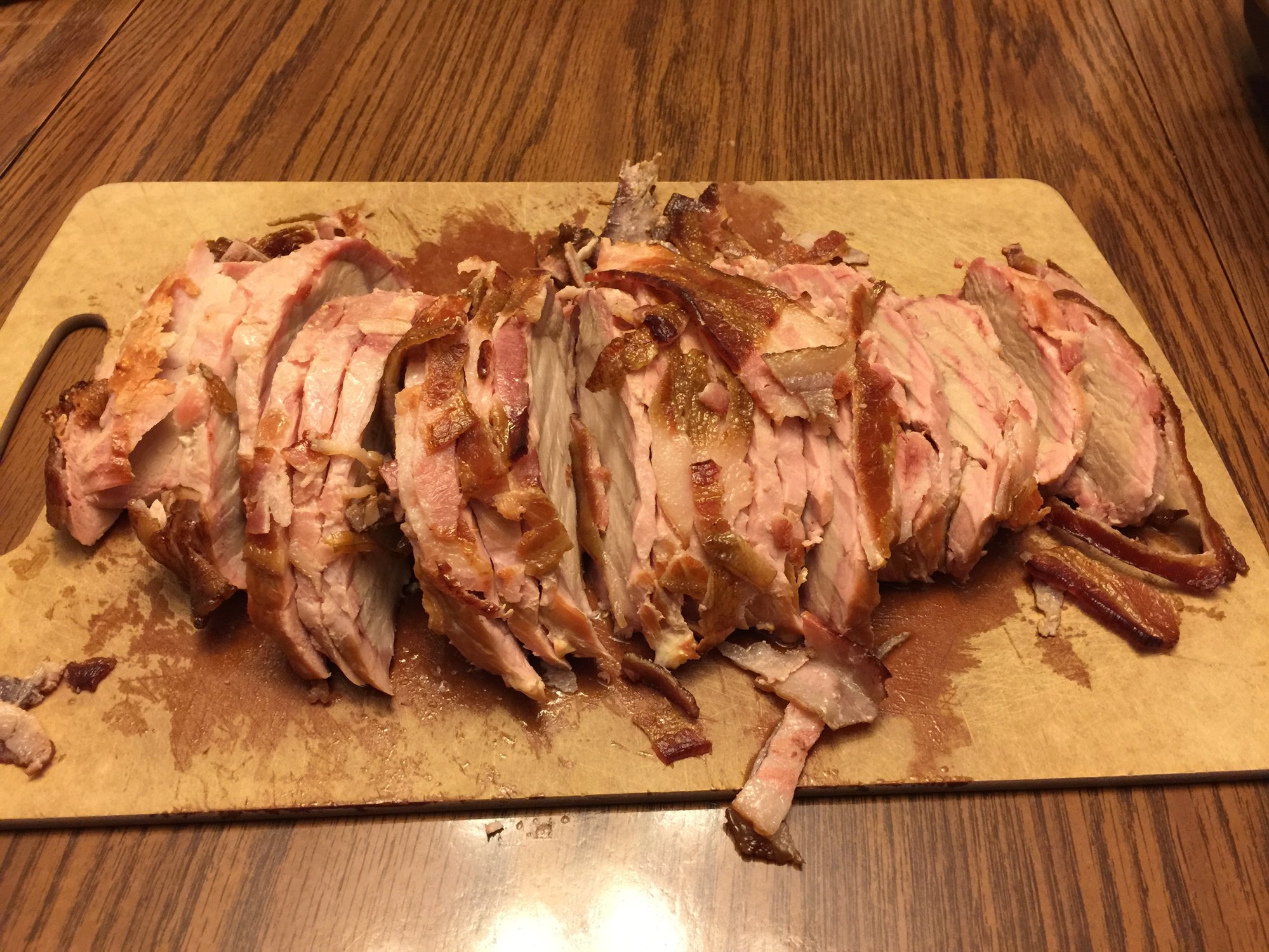 Cooked for 2 1/2 hours at 325 until155 internal temp. I used BGE Lump, and the Rig setup. This was the first time I cooked without the platesetter but I got over it real fast as the rig was perfect for this cook Thanks for your help I wanted to share. Chimney was much easier too