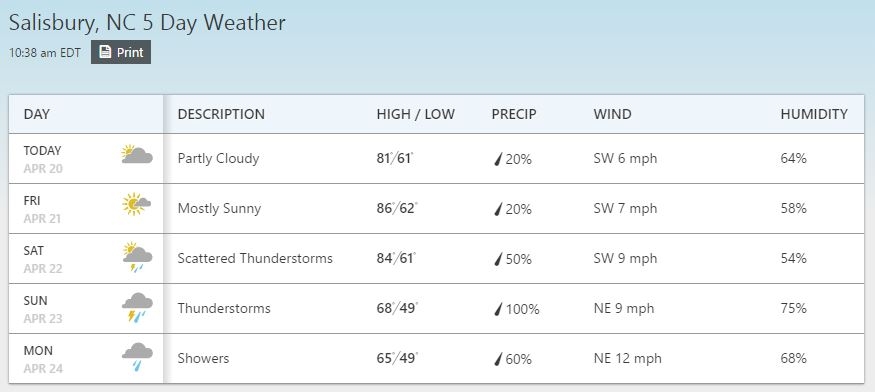 In my book, it is always 50% chance of rain. It either does or it doesn't. Not gonna sweat it.YEMTrey said:Updated weather: