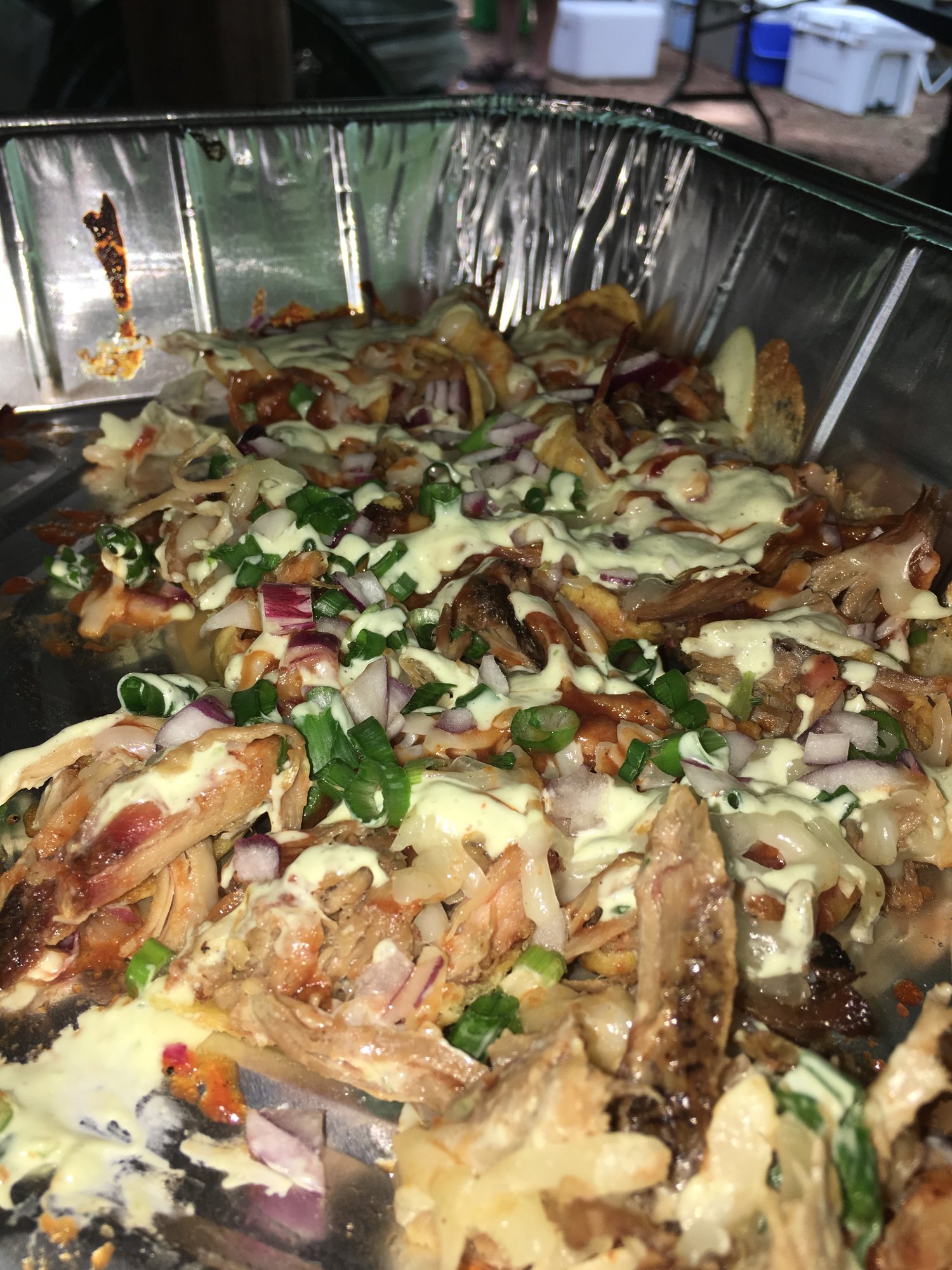 @tarheelmatt preping and his pulled pork stuffed Fritos with cheese onions and sauce