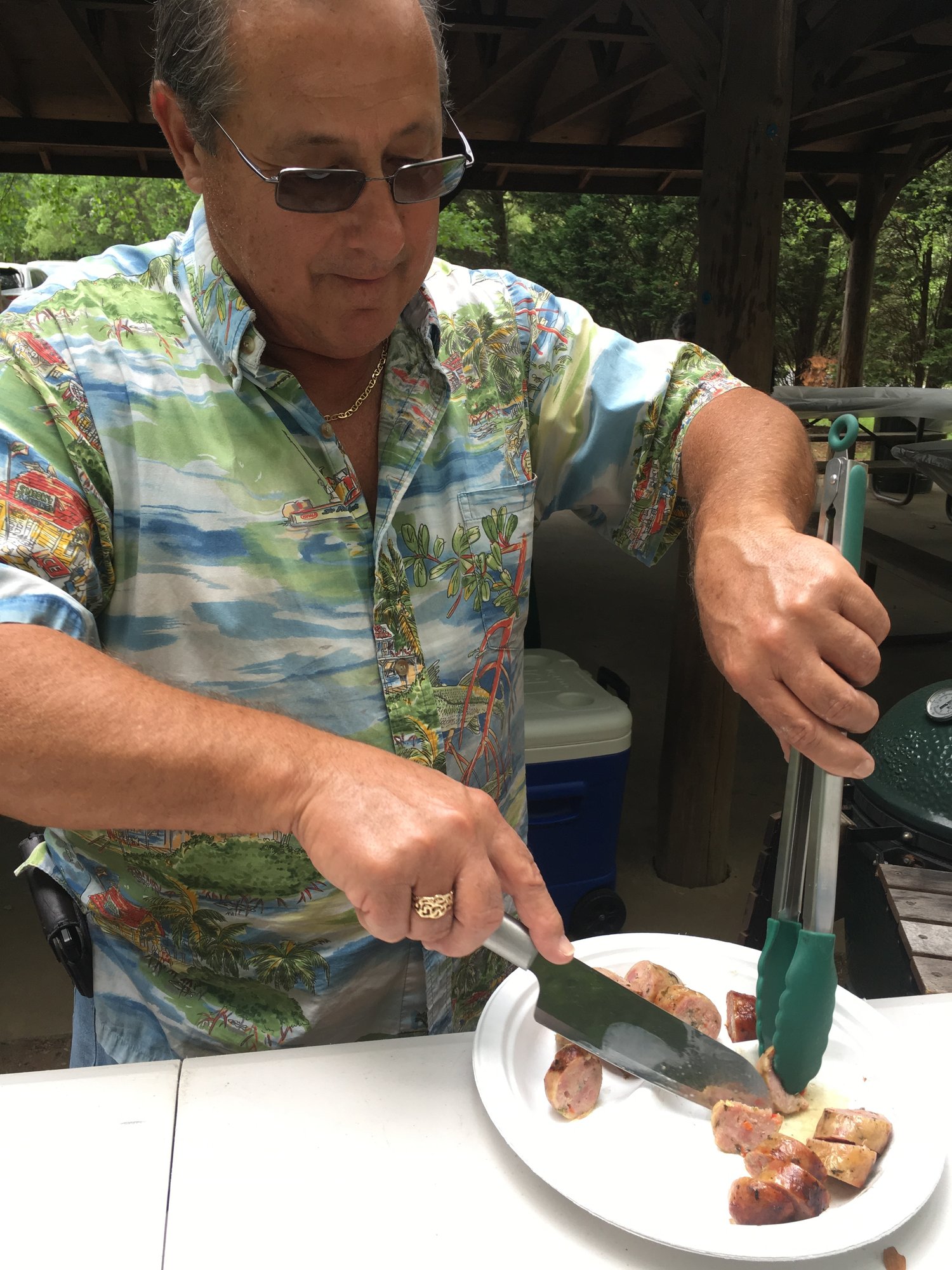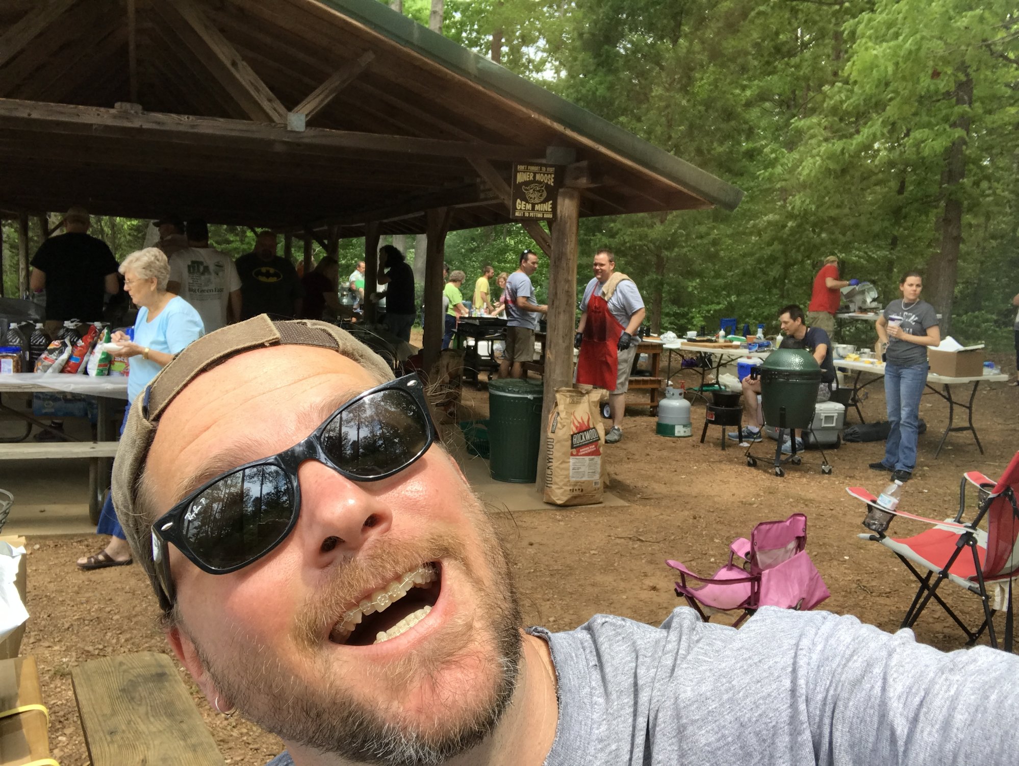 Beautiful day here. Cell phone coverage is terrible so it's really hard to upload pics. But some great food is being put out. The Pit Beef is about to make an appearance."I've made a note never to piss you two off." - Stike