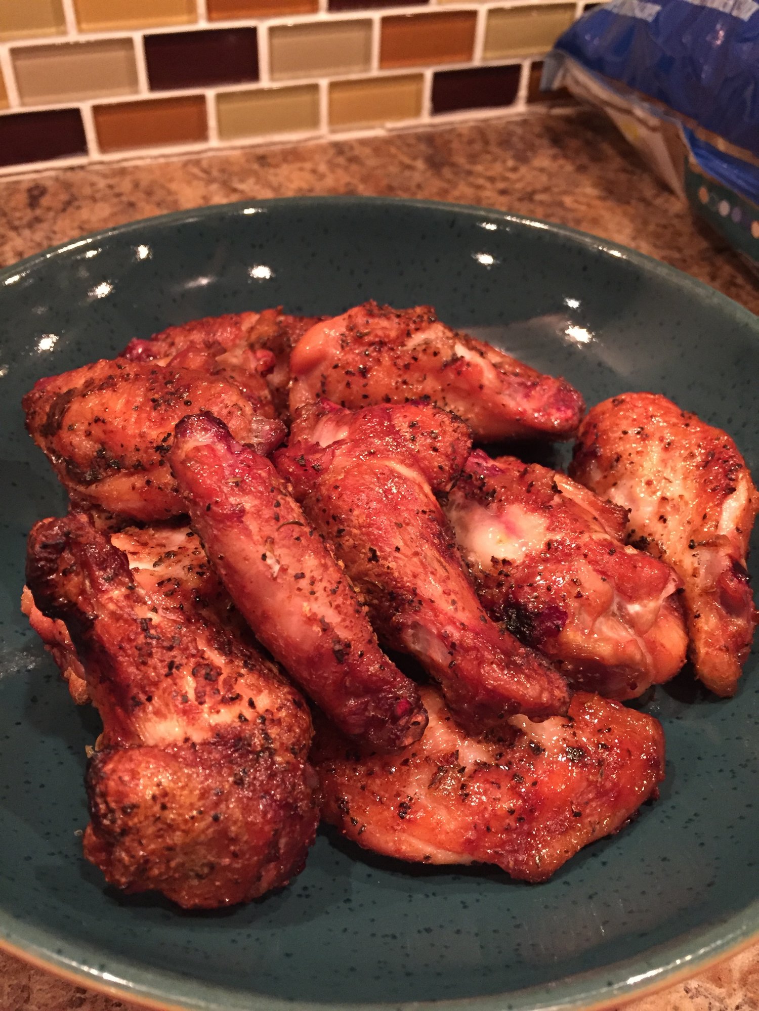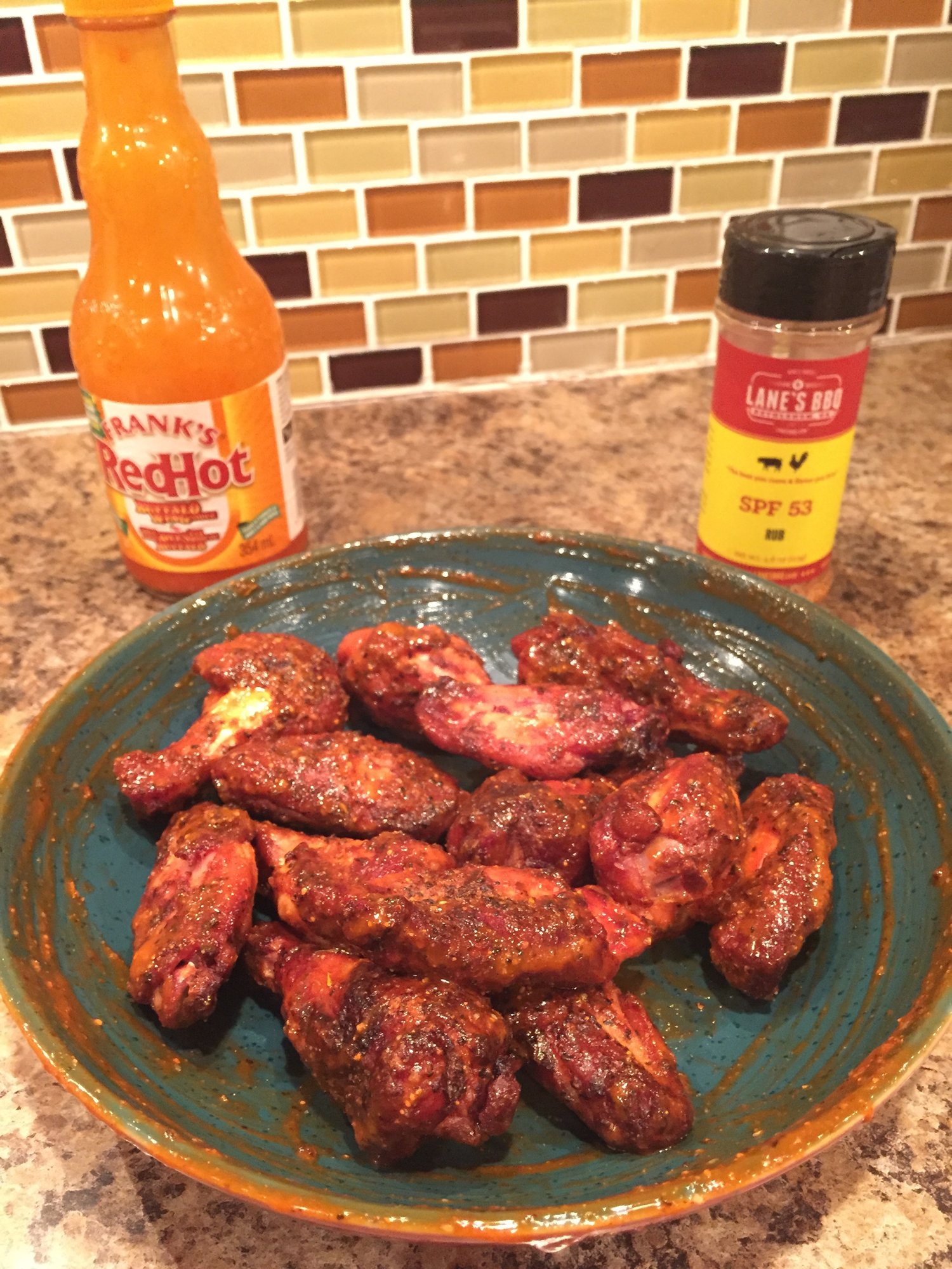 Set up at 325 direct after letting them chill in the fridge with corn starch and SPF53 for about 12hrs. Cherry wood for smoke. Tossed in Franks Buffalo sauce and more SPF53. I thought they were our best wings yet but my 10 year old thought they were "a bit" spicy.