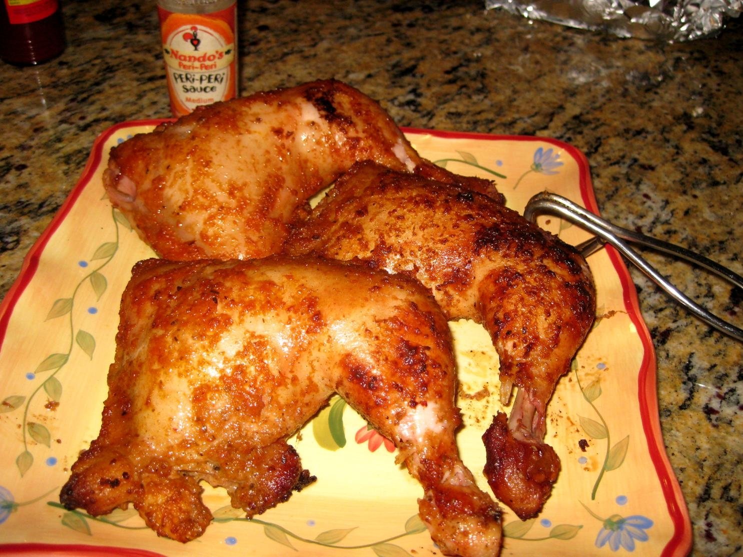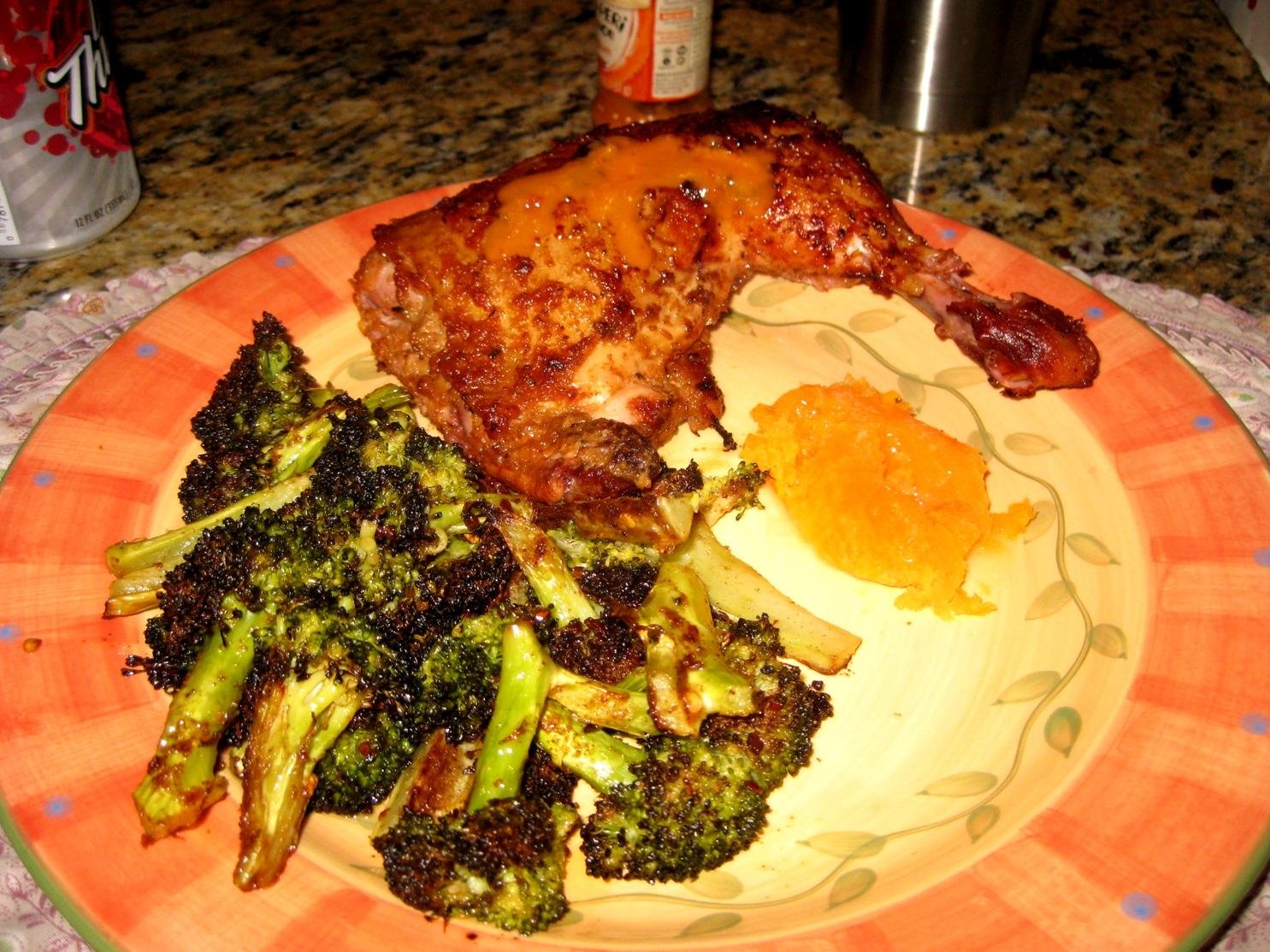 Peri-Peri leg quarters with roasted broccoli and sweet potato.