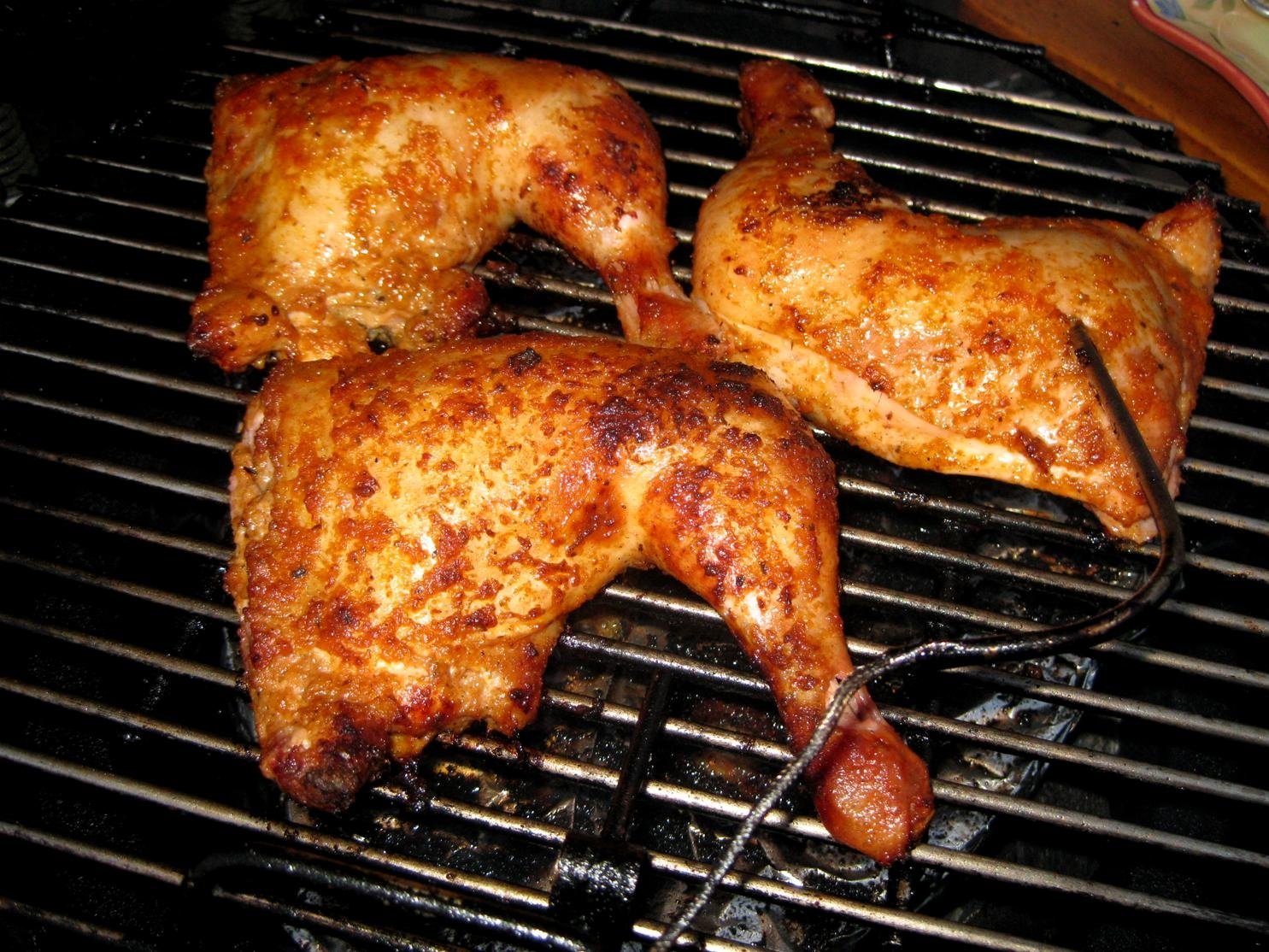 Indirect at 380 (because I missed 375) to an internal temp of 180. Marinated in Peri-Peri overnight then a little extra straight out of the bottle once plated. Roasted broccoli with red pepper flakes, garlic powder and paprika, and a tiny serving of sweet potato. Very tasty meal.
