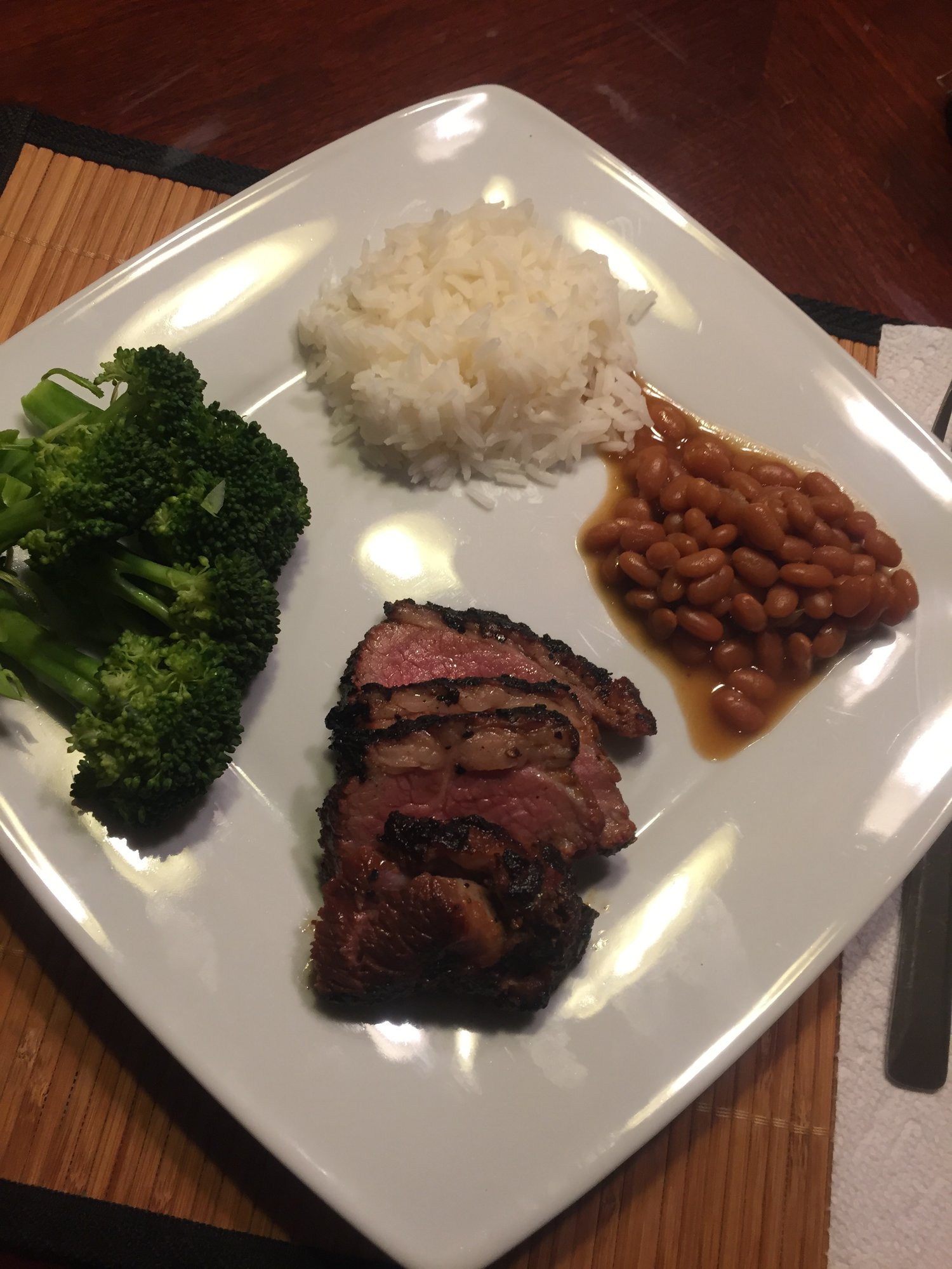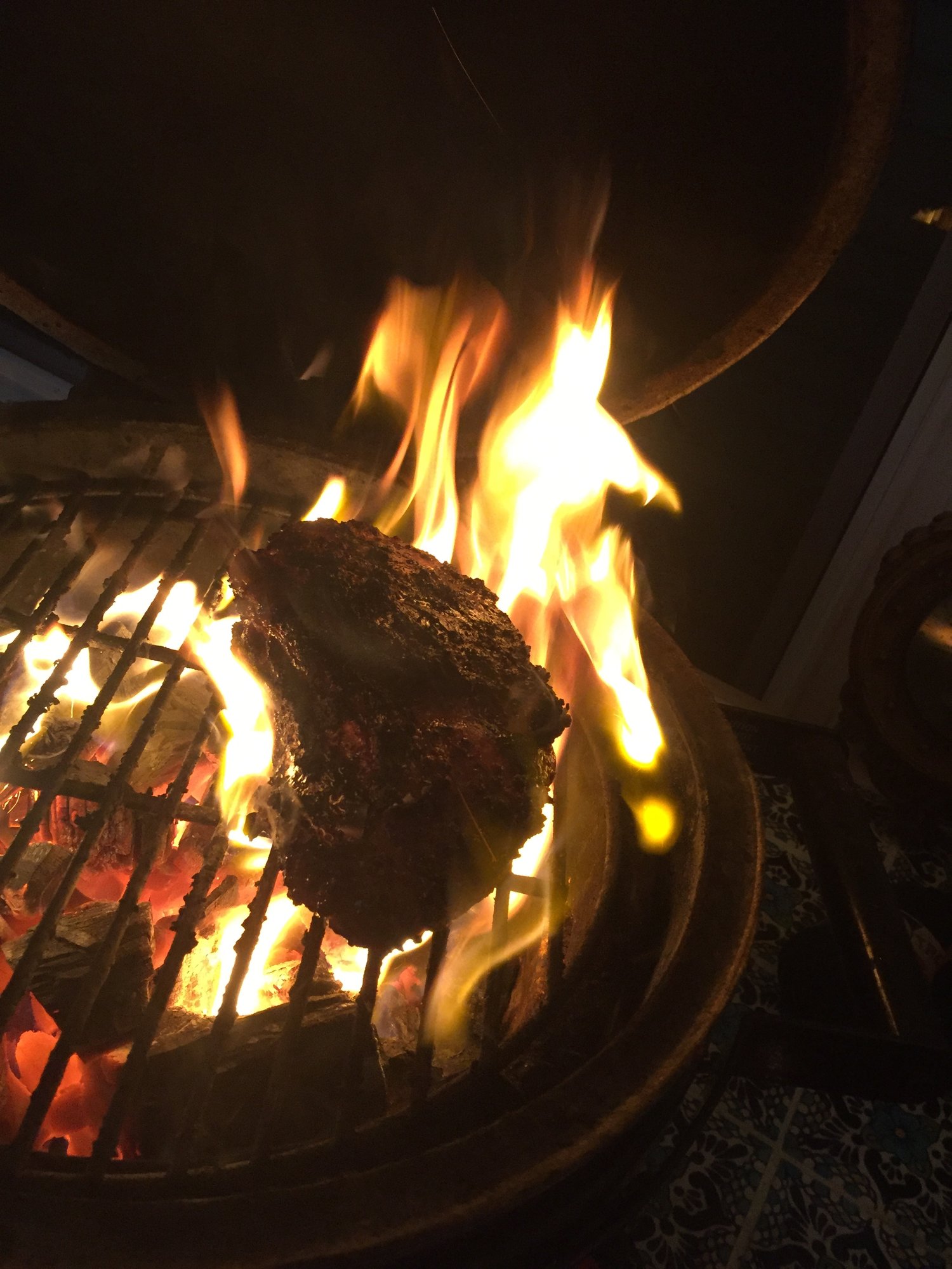 Took it out and put it in the fridge. Then on the MM at 300 for 4mins/side. Top & bottom. Pulled. Got temp up to 600 did 1 min each all four sides. Let it rest for 10 mins then sliced.