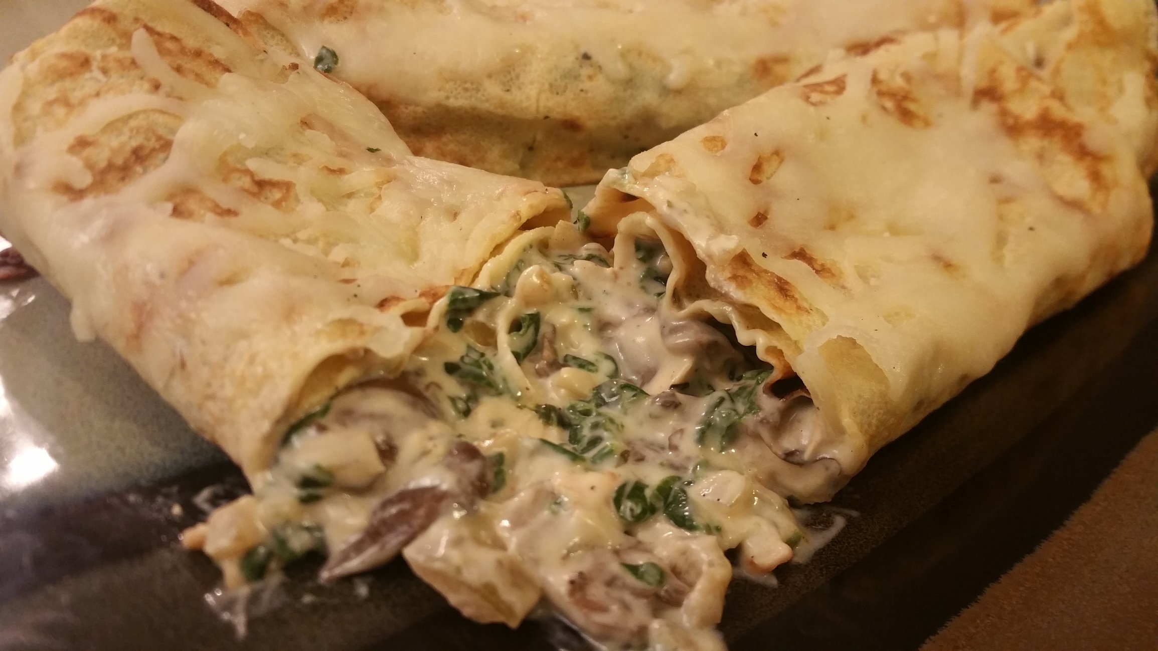 Next time I would add more chicken to the Mushroom/Spinach recipe. The white wine was optional. It's a perfect compliment in my opinion. I also added toasted sesame sauce to the mushrooms.Monte Cristo Crepes:Mongolian Beef Crepes:http://www.cleaneatingmag.com/recipes/dinner-tonight/mongolian-style-beef-crepes-with-spiced-yogurt/Spinach Mushroom Chicken Crepe:http://everydaydishes.com/simple-food-recipes/chicken-crepes/