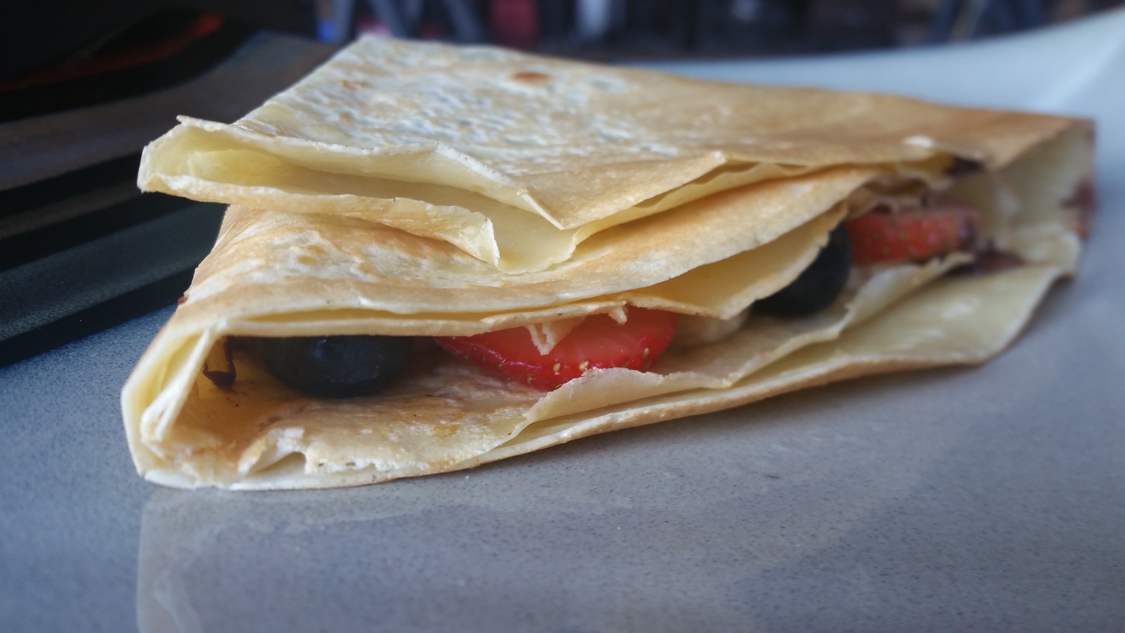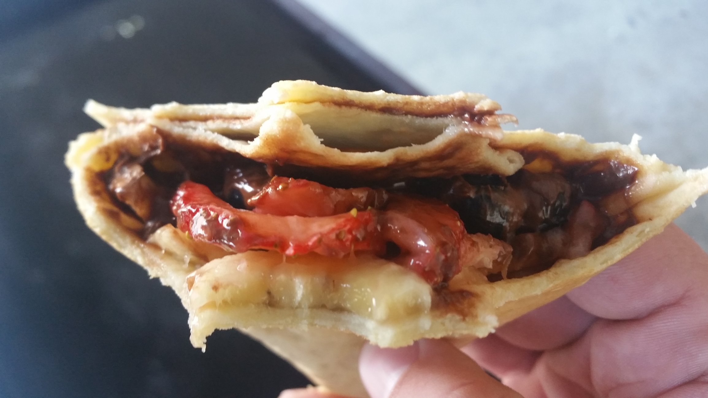 My wife and I first attempt of making a crepe. (They make it look so easy in person)