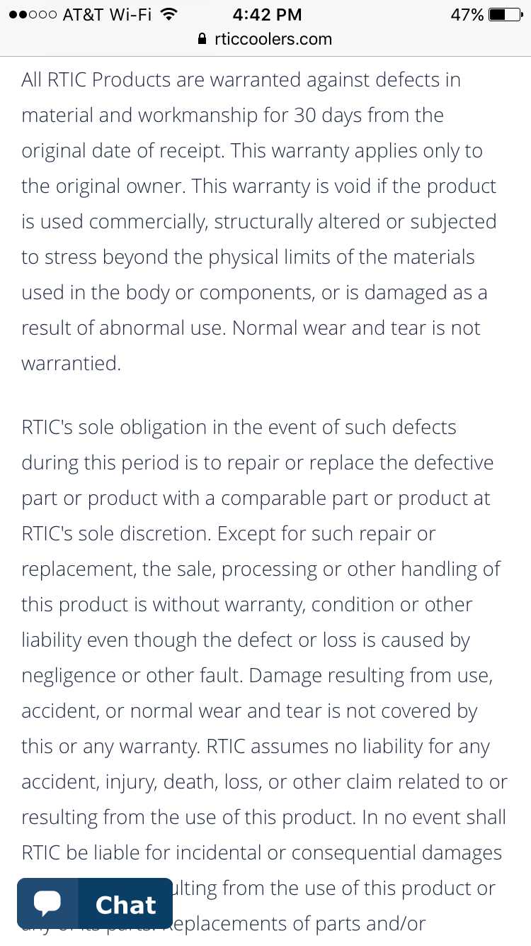 This says it all, called to confirm if my older rtic would be warrantied and they said, 30 days on all coolers and drinkware. This has to be the worst warranty I've seen on any product. Anyone buying Rtic good luck.