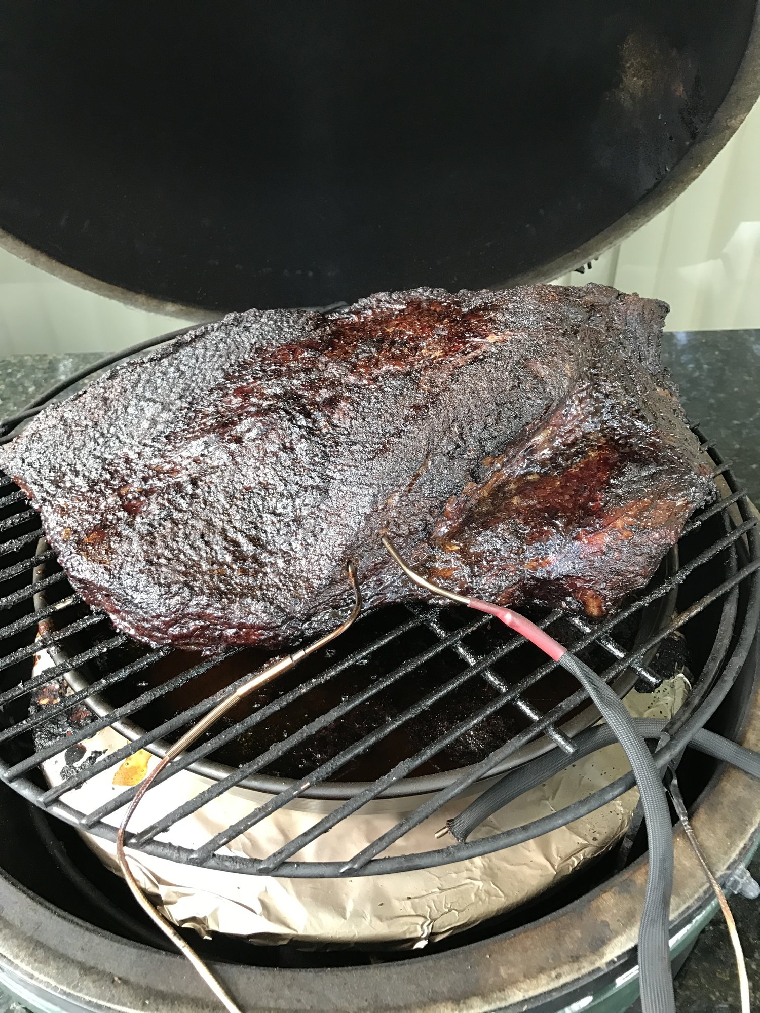 This same thing with the dome temp drop when hitting the stall has happened on all of my overnight cooks at around 250. Don't know if it was coincidence, but did not happen on the way I ran at 275-280. You've already made the adjustment so I'm sure it will be just fine. My guess, pure speculation, is it's just the way the lump crumbles as some of the ash falls through the cracks and the air flow changes slightly.horoegg said:Damn, looking good! I'm stalled at 163 IT on my butt for the last hour plus. It's been on since 4:30am. Is it common for the egg temp (at the grate) to be dragged down in the stall? I was running at around 250 for 5 hours and when it hit the stall, the temp slowly dropped down to 225. I've since adjusted back up to 246 and its been sitting there for a bit now. Using a Maverick ET-733 for the first time today so I think these fluctuations have gone mostly un noticed in the past just using the dome temp.Stillwater, MN -