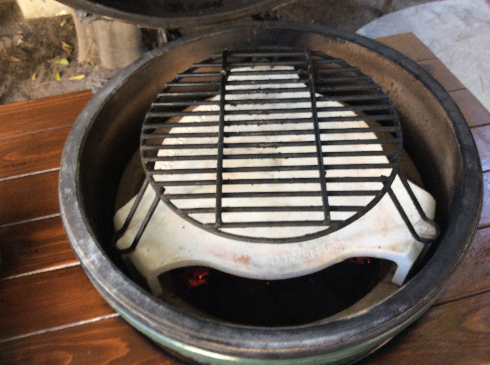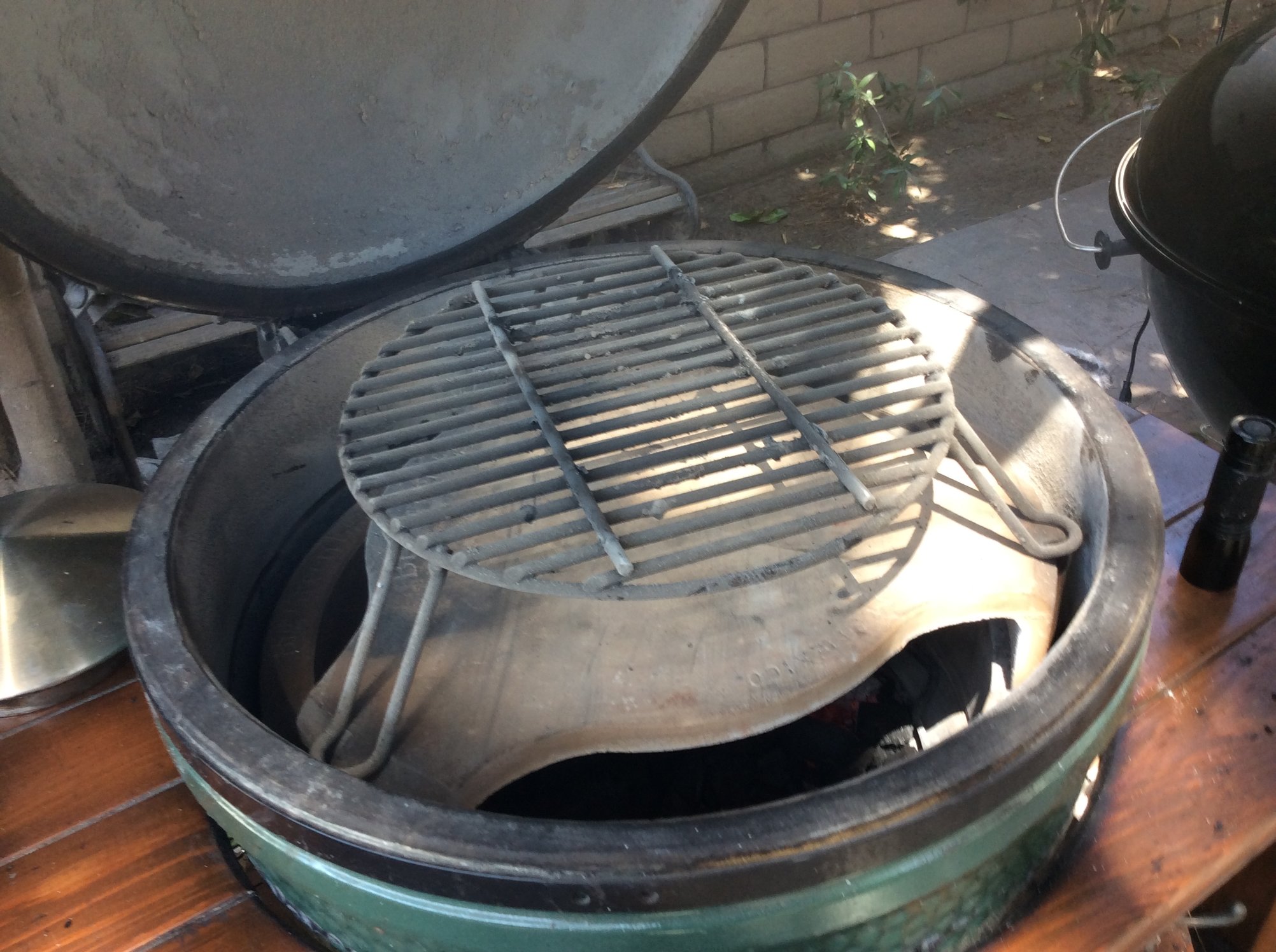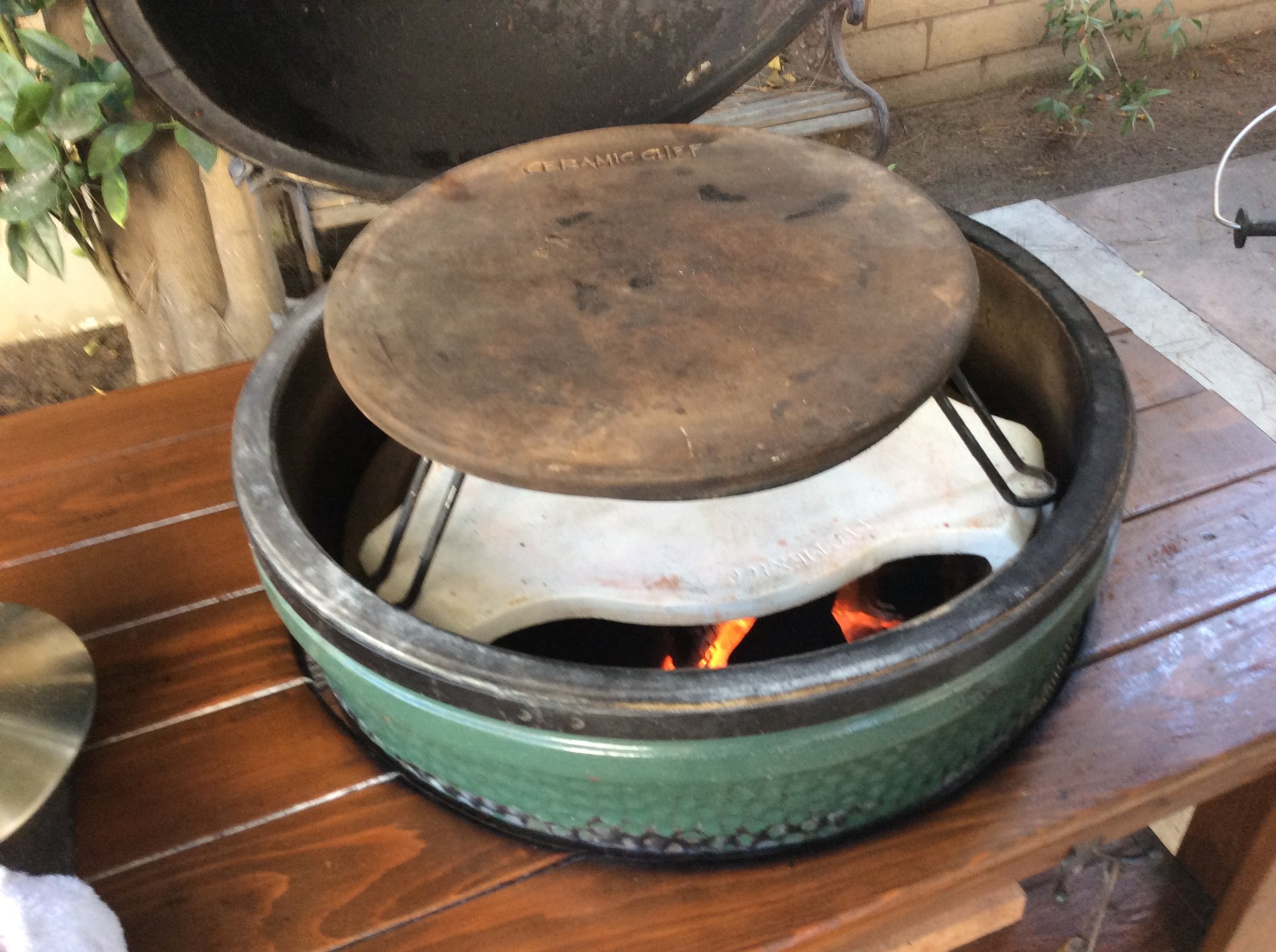 It's all been covered already. A Thermapen is #1, and for me the Platesetter Woo from Ceramic Grill Store (PSWoo) is my second favorite. You want to take out the heavy (and/or hot) platesetter? Just pick up the handles and lift off. Wear gloves if it's hot. I just set it down on the concrete patio floor, but you have to know where you're going to put it down.Judy in San Diego