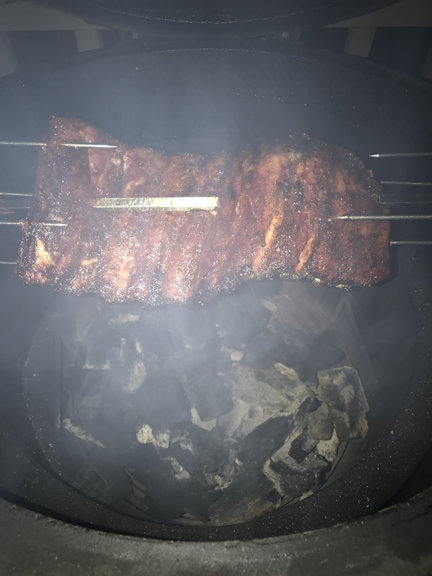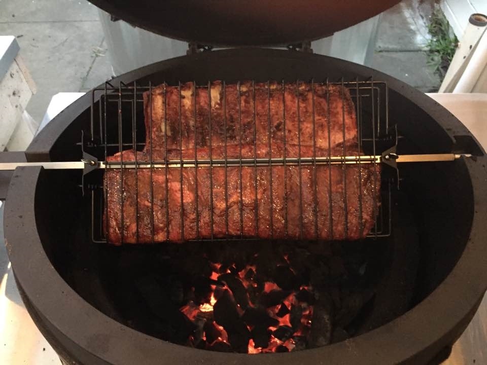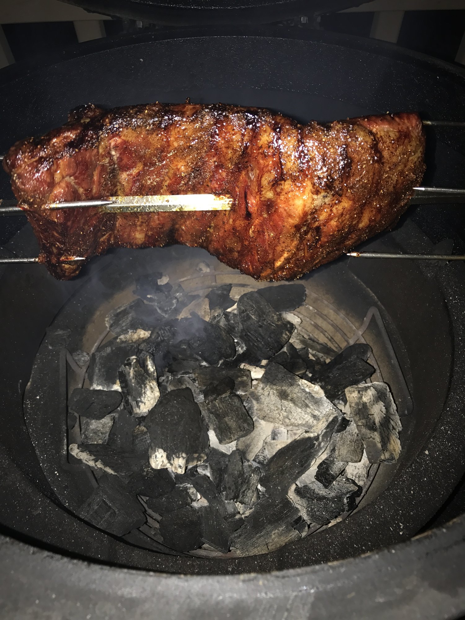 We spun a couple of racks pork spare ribs on the rotisserie today.  Coated with 5 spice and hit them with a glaze the last hour.  Served with coconut rice.  Great flavor.
