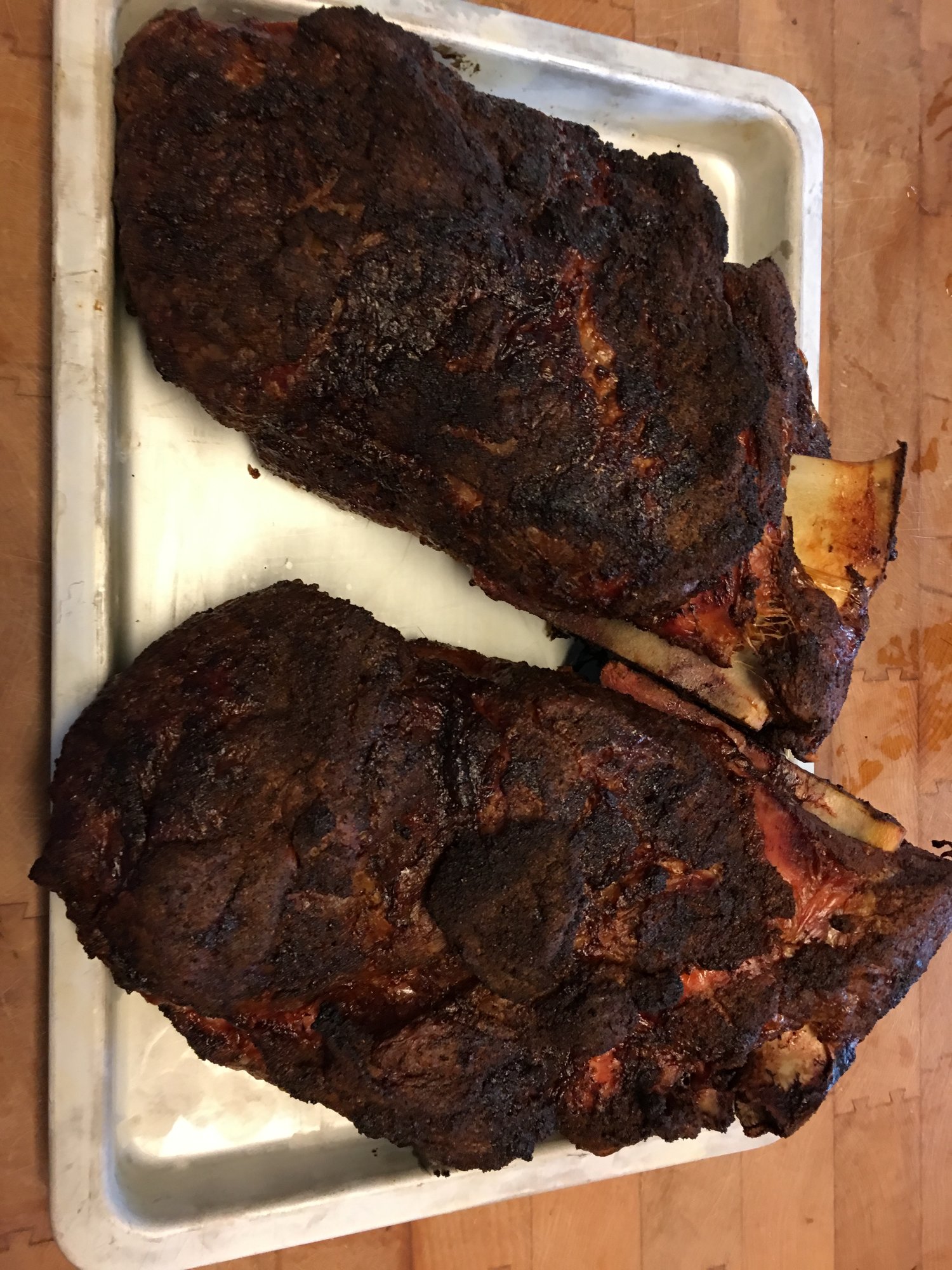 I use mustard & Bad Byron's Butt Rub (both not required). I put on the rub, then mustard,