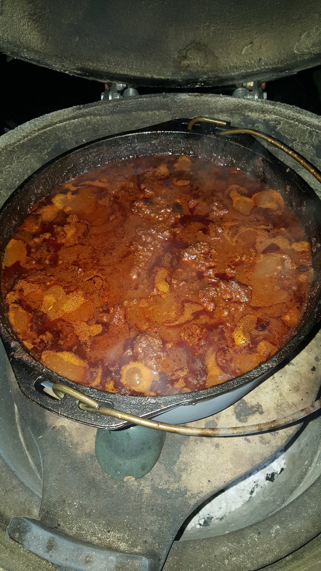 I basically used @EggObsessed awesome chili recipe except I used 4lbs ground beef on the top of my DO.