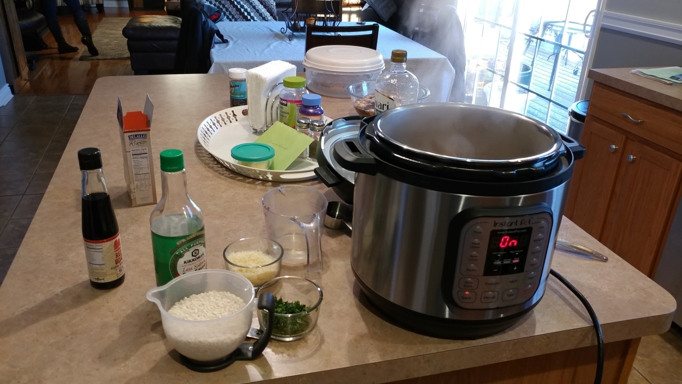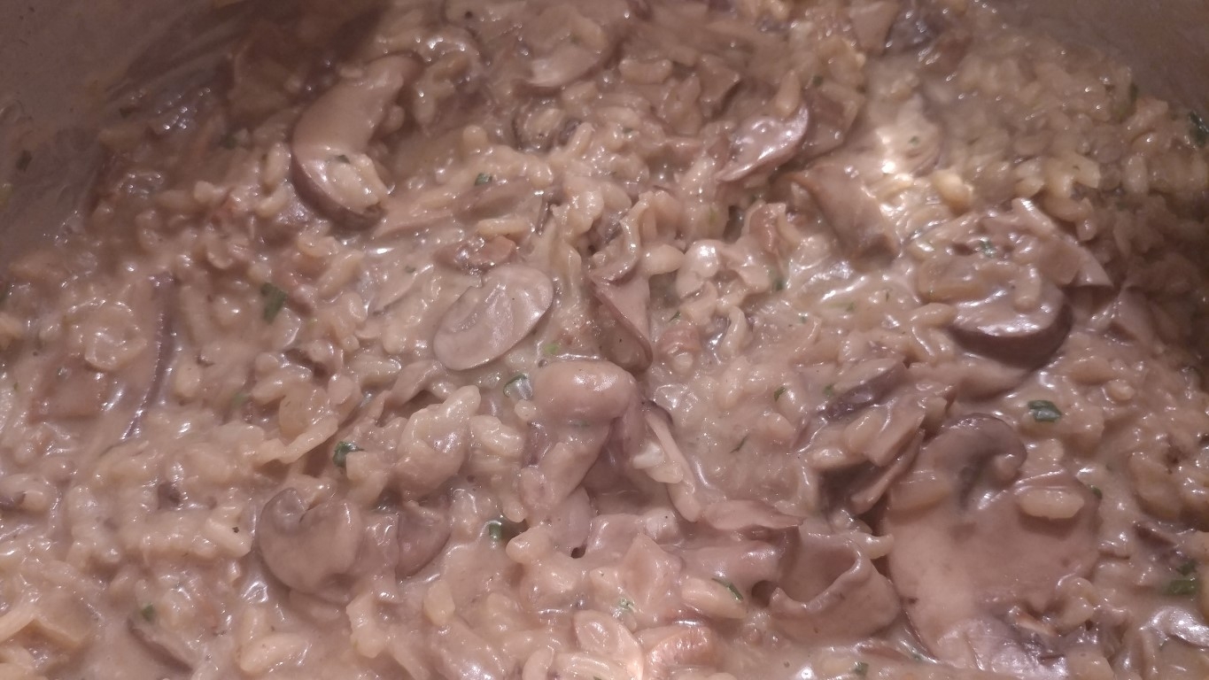 Birthday chops, chorizo and mushroom risotto