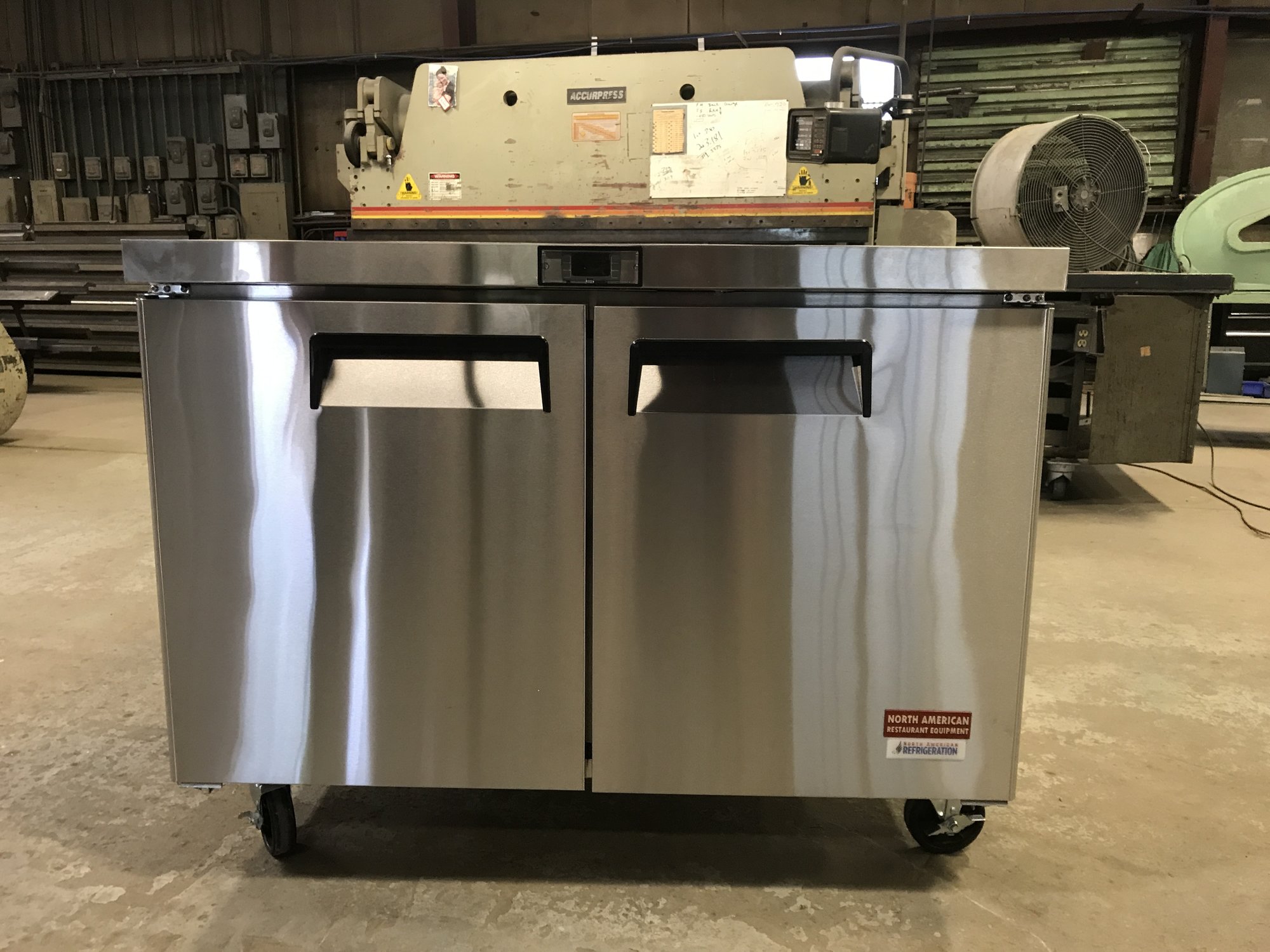 There is just enough room to mount this 48" fridge between the propane burners and the open door of the prep table. I am thankful I opted for the extra room on the trailer and for the dual 3,500 lb axles.