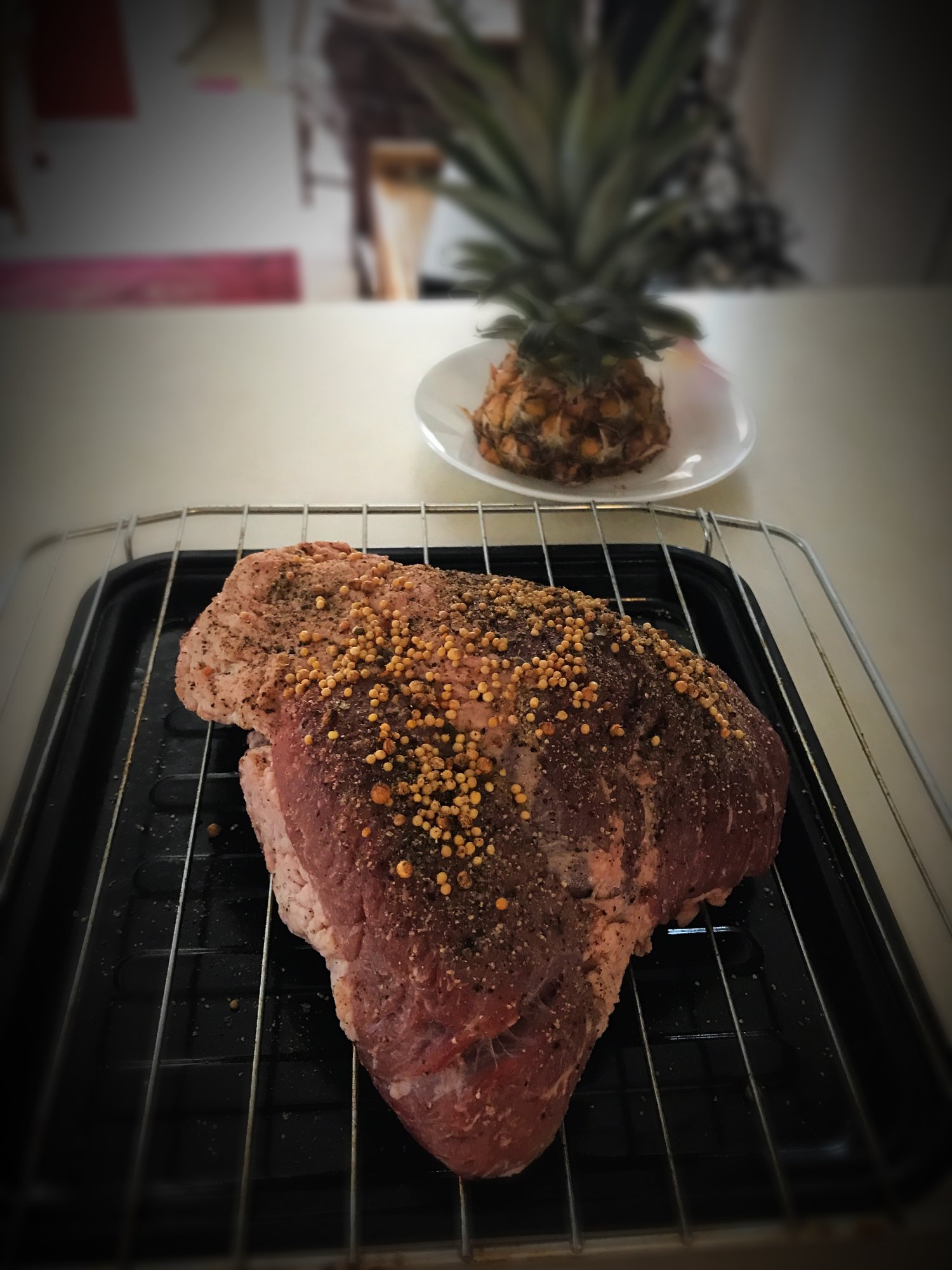 I did a Pastrami this weekend. I took a Costco Corned Beef Brisket and soaked it in water for about 10 hours to desalinate, changing the water every couple hours. Following that I coated the meat with ground coriander and black pepper, plus a little Kosher salt. It sat in a ziplock overnight.
