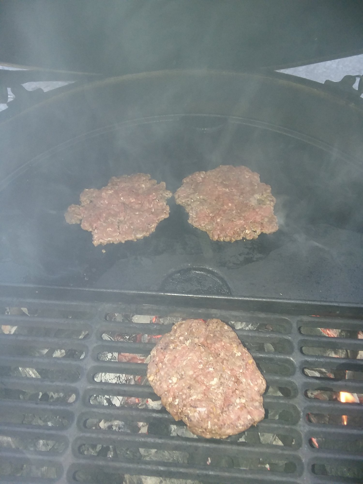 (in the pics, the wife likes thick burgers. Lucky I have both a grate and a griddle in my XL =)  )