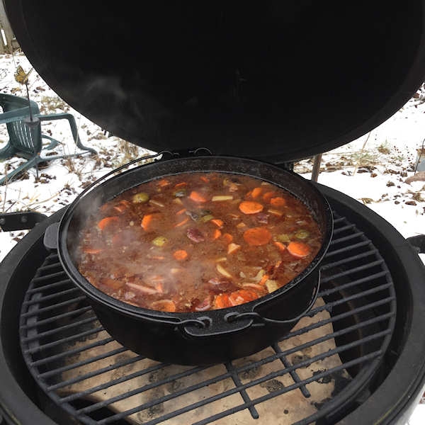 Got the Mini Max fired up with the Dutch Oven to brown the meat: