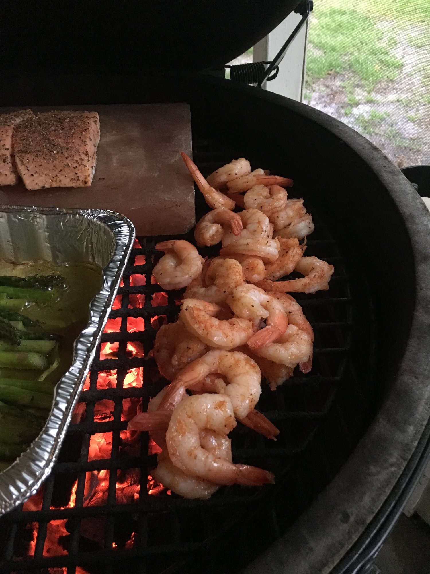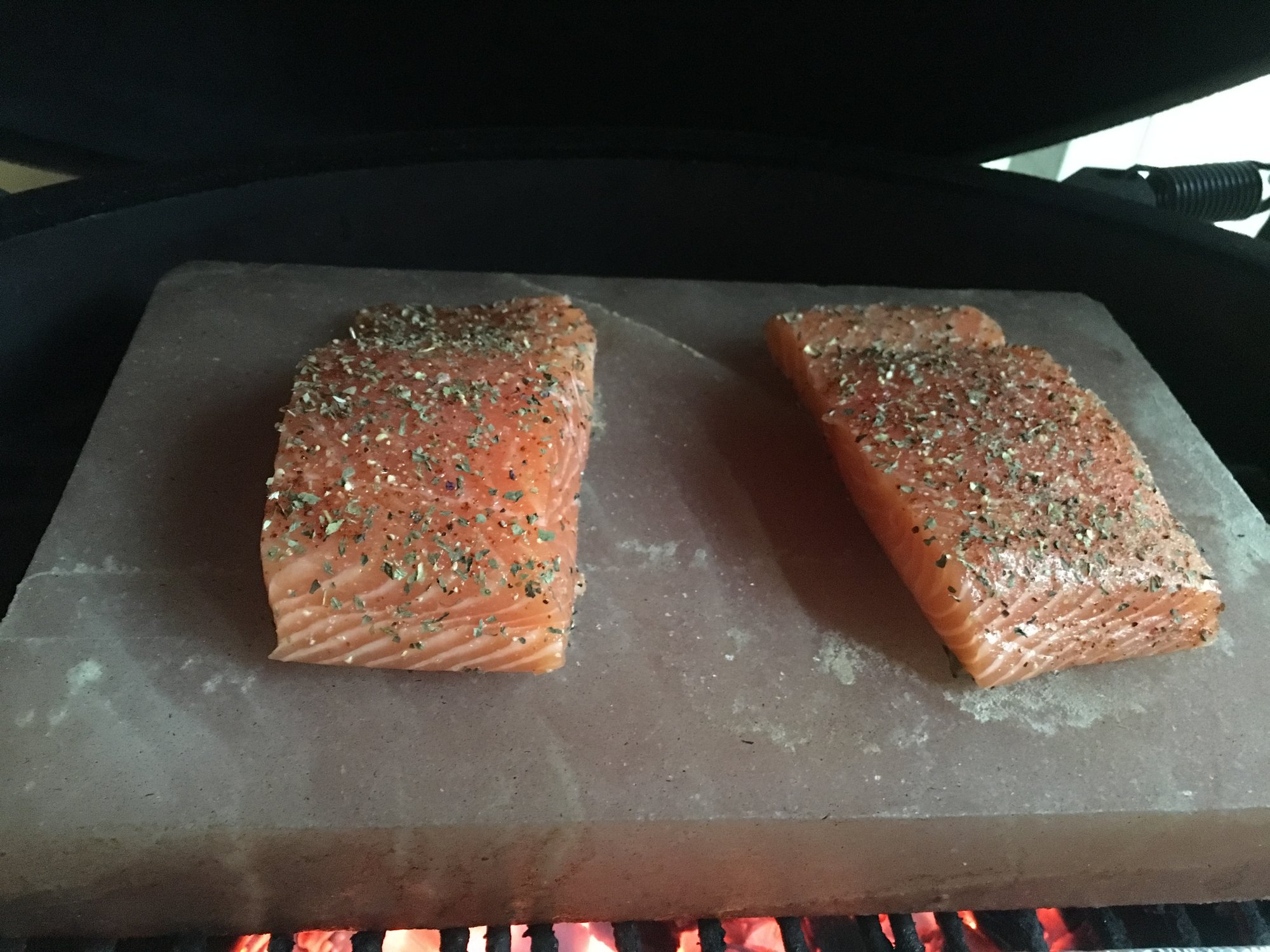 Salmon, shrimp salt block. A little healthy