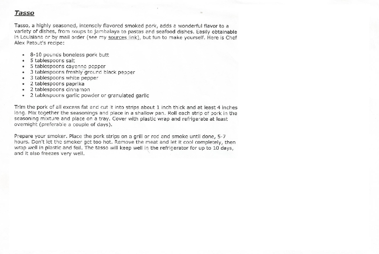It's been over 3 years since I've made Tasso.  I substituted pork loin for the pork butt because it was easier to prep.  Cooked at 225° for about 2½ hours since I didn't want it to get too hard.  This is really spicy but, so good.  Will be putting this in Red Beans and Rice, Gumbo, and Jambalaya.  This was about a 4lb loin.