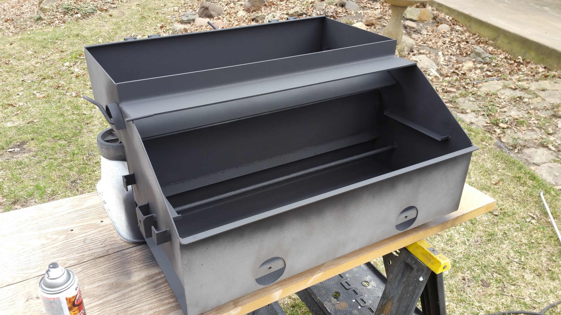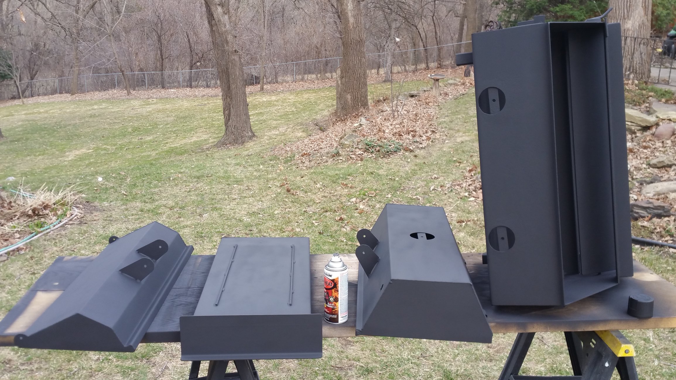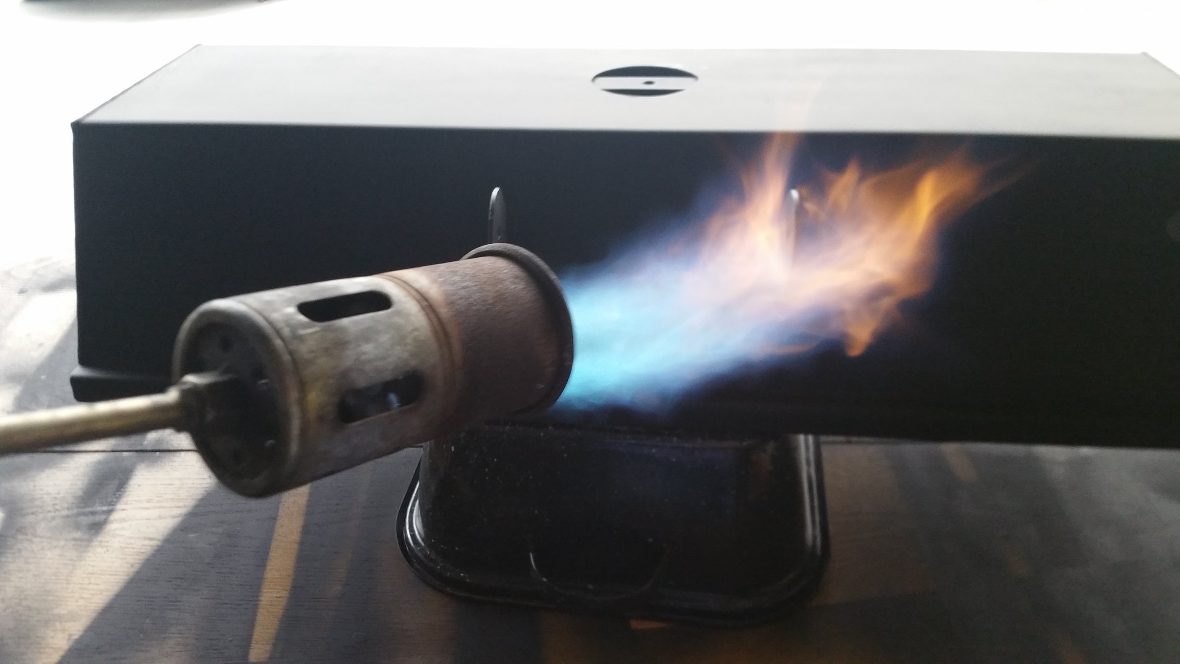 The high heat paint is supposed to be heat cured an hour after being painted. I don't exactly have an oven to fit the smoker so the weed torch came in handy.
