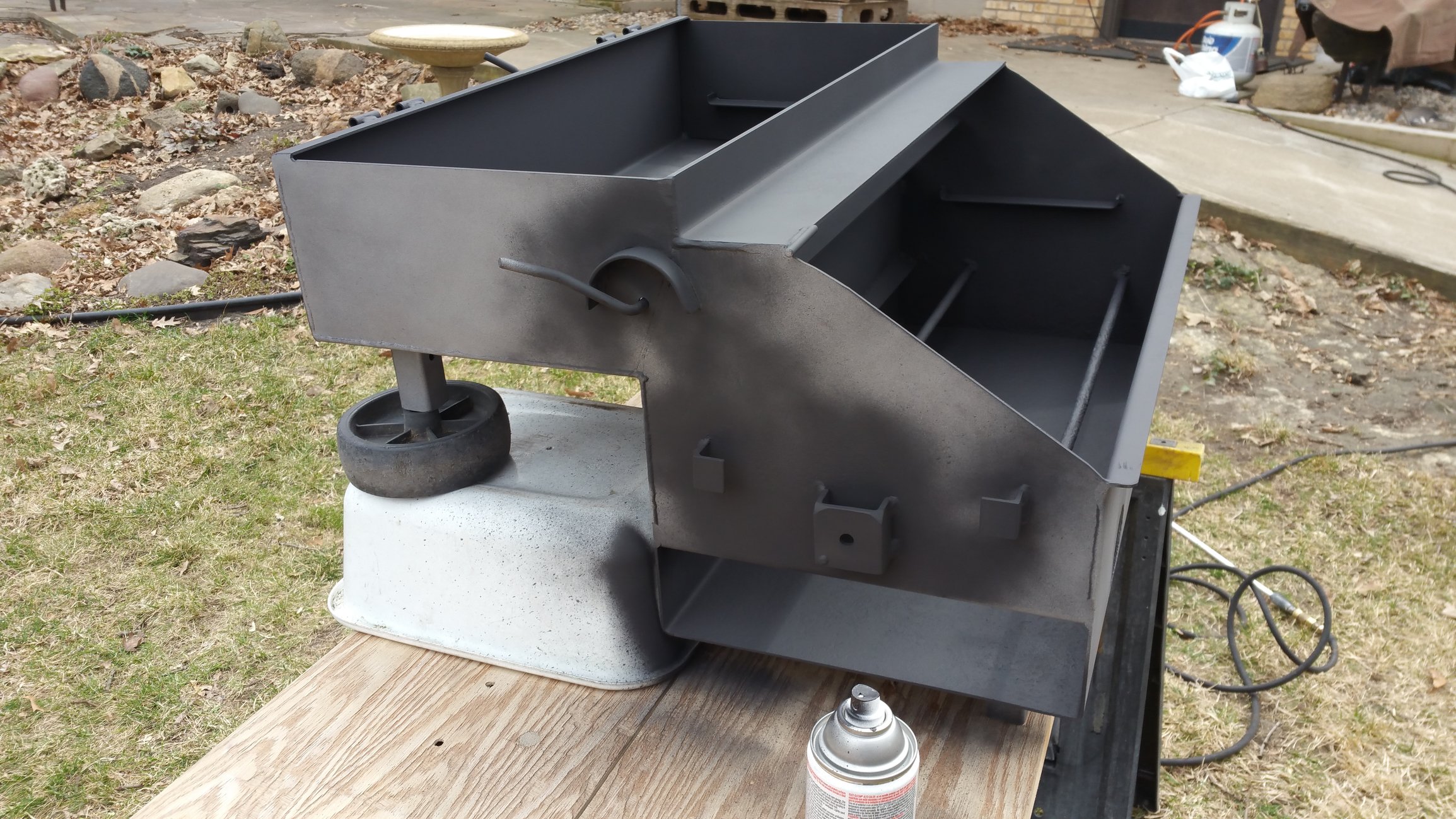 I'm hoping to get some paint on it today. I still need to find some expanded steel to replace the grate I ground out. I'd also like to replace the Fisher Price looking wheels with something a little better. I'll have to do a little research on that.