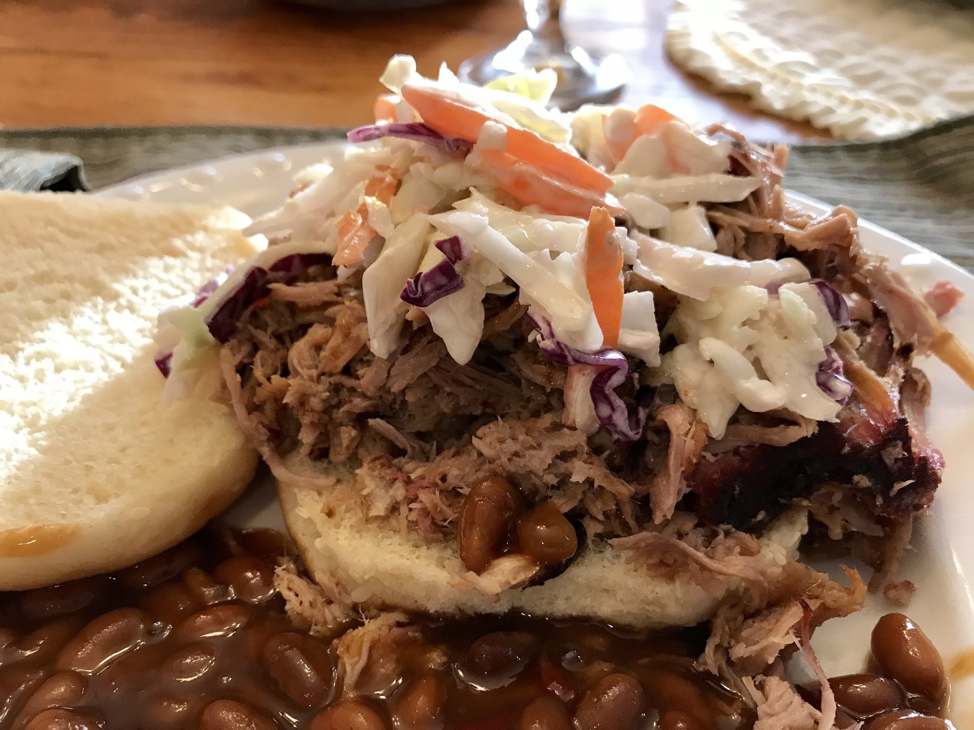 This was the best pork butt that I have cooked. This time I waited to pull it off the egg a little longer at 198 internal. FTCed for about 2 1/2 hrs. The meat easily pulled yet had great flavor and moisture. Everyone went for seconds and there was just a little left for everyone to take home.