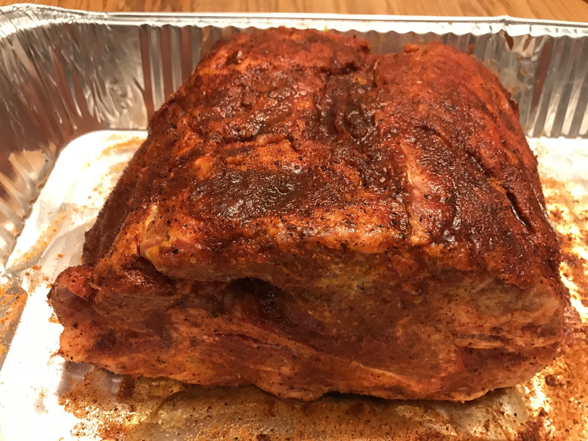 Compac Duroc 9.8lb butt rubbed with Meat Church Gospel.Set on the XL at 11:00 pm last night.
