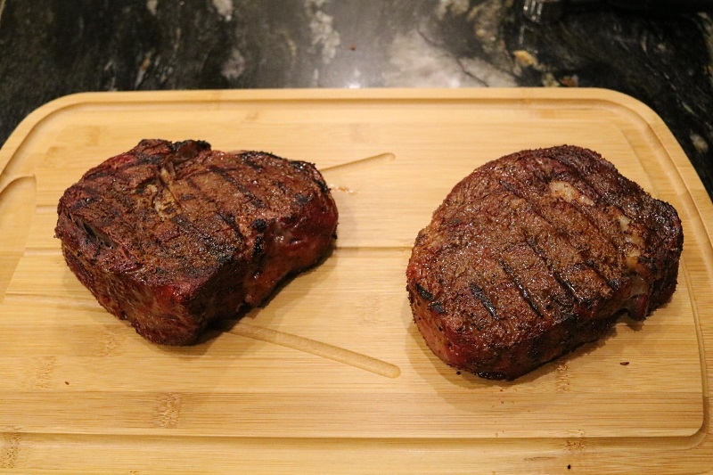 LBGE up to 550F/285C, seared the rib eyes for 30 secs each side including edges.