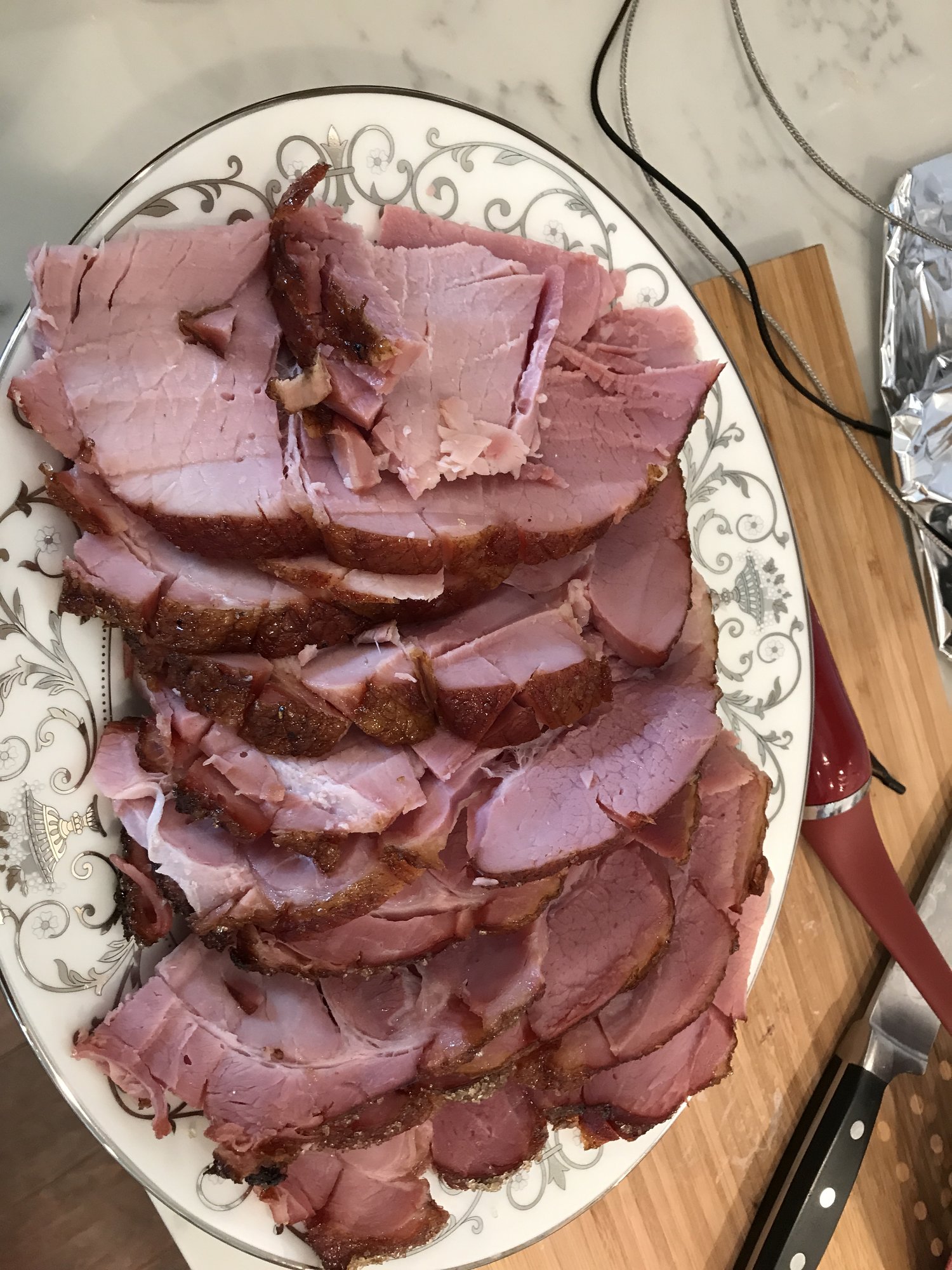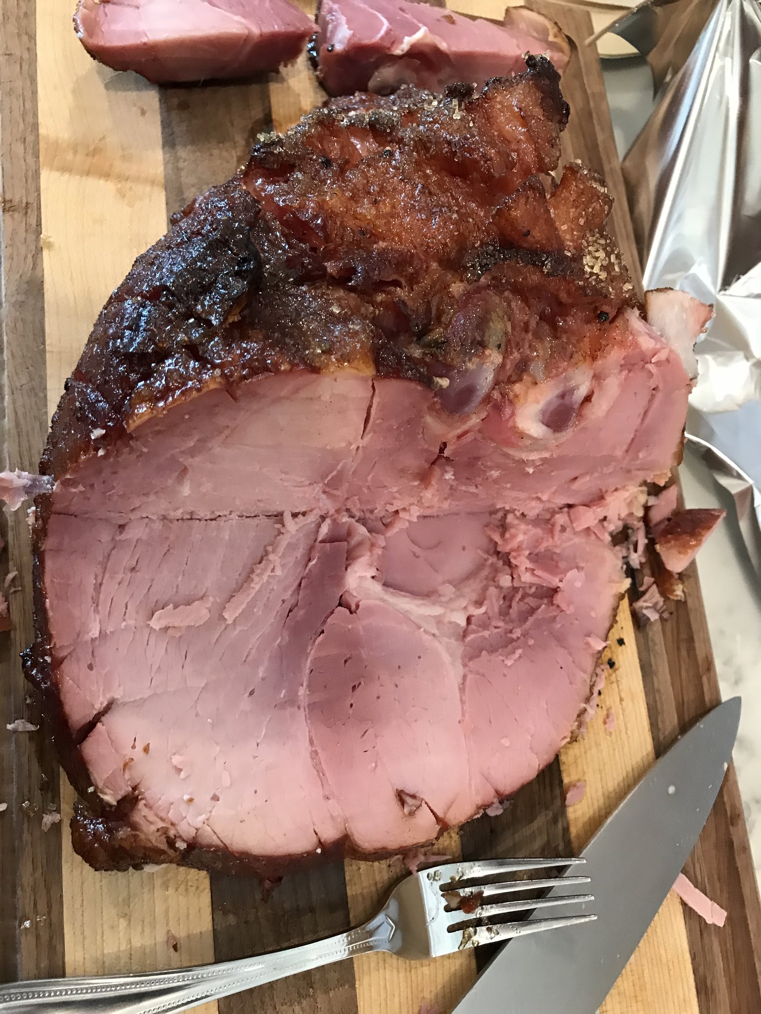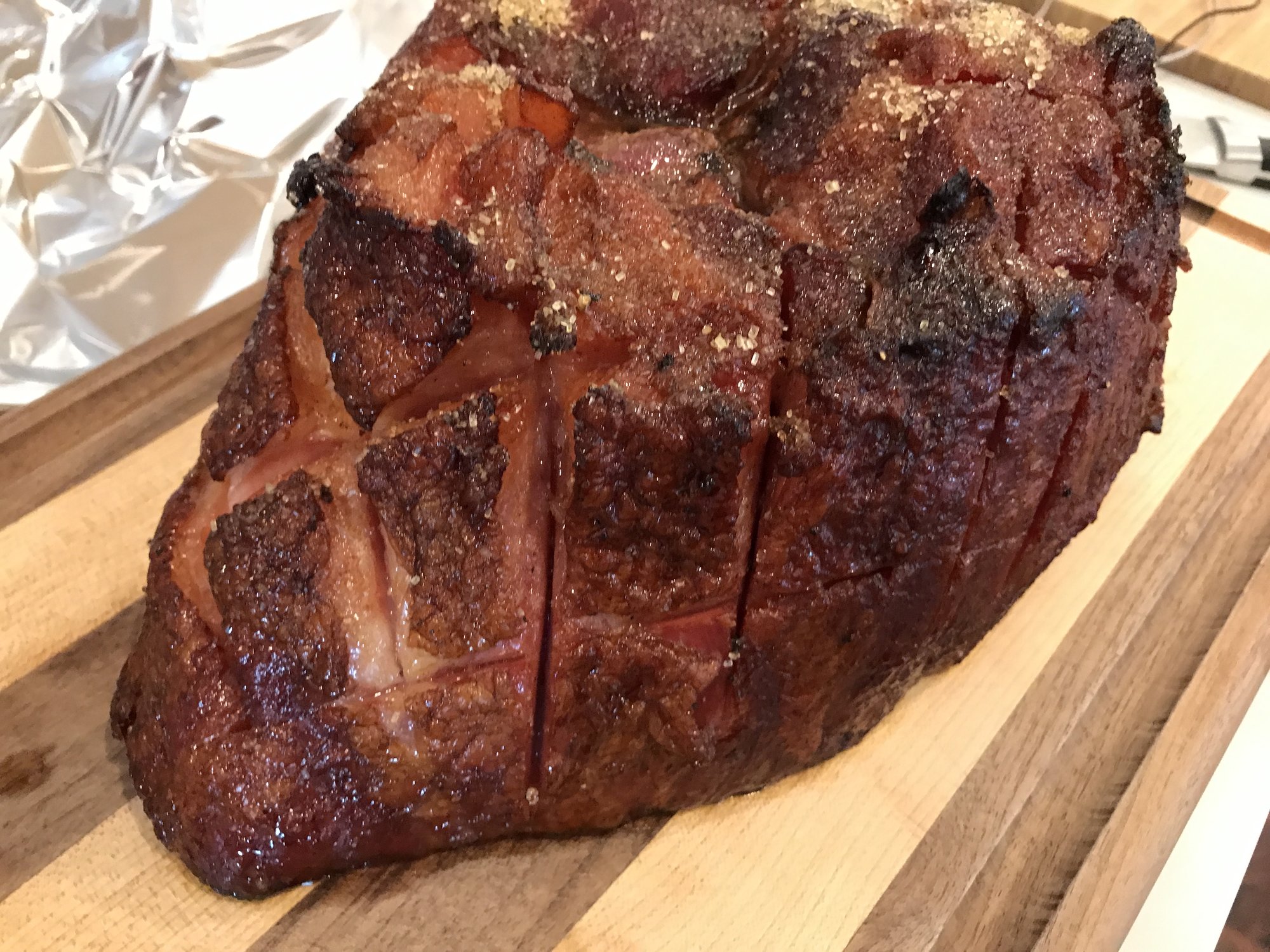 honey rub with oj, cinnamon salt and pepper and garlic. sugar in raw to finish.1 cherry and 2 applewood chunk for smoke.