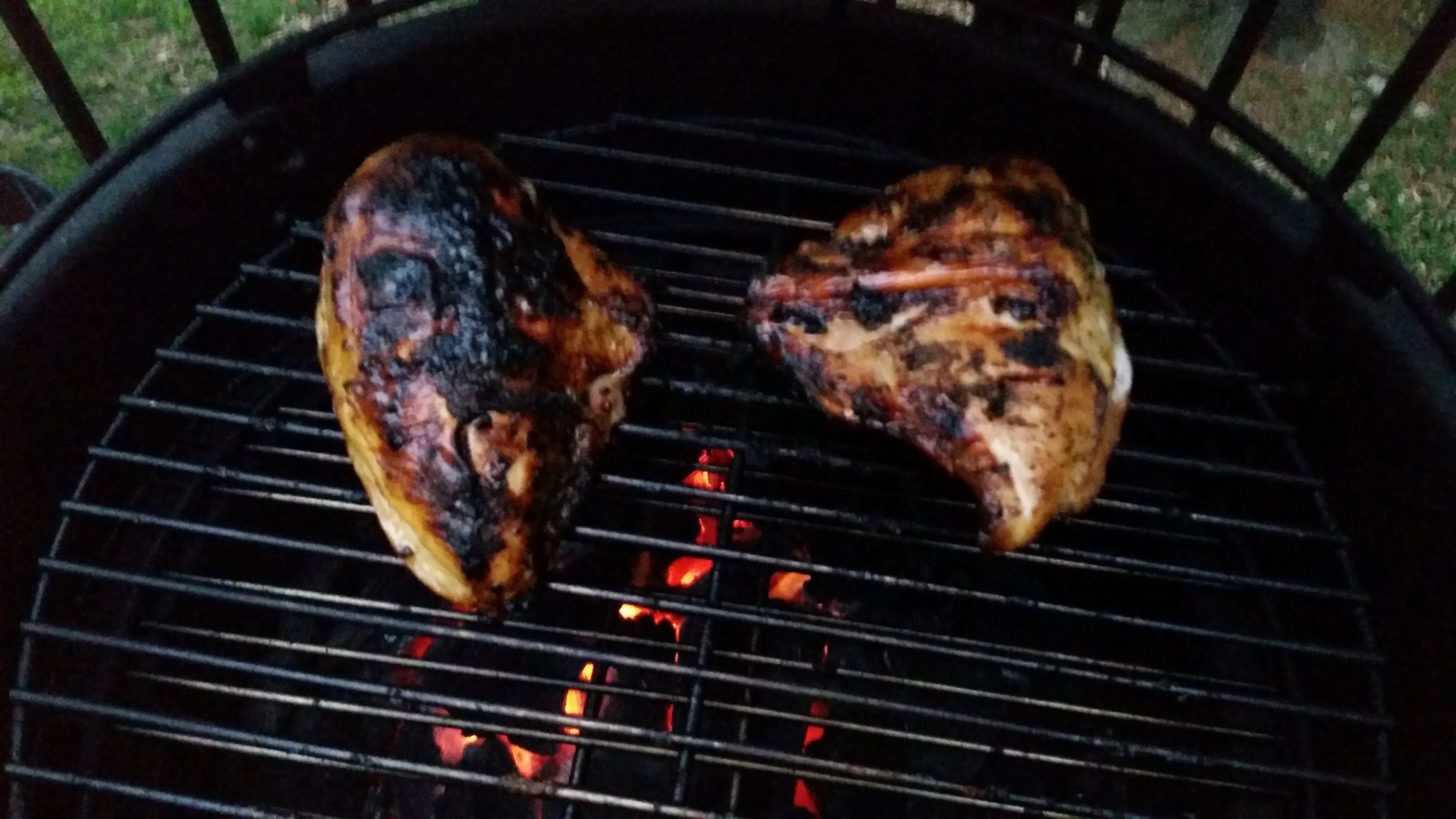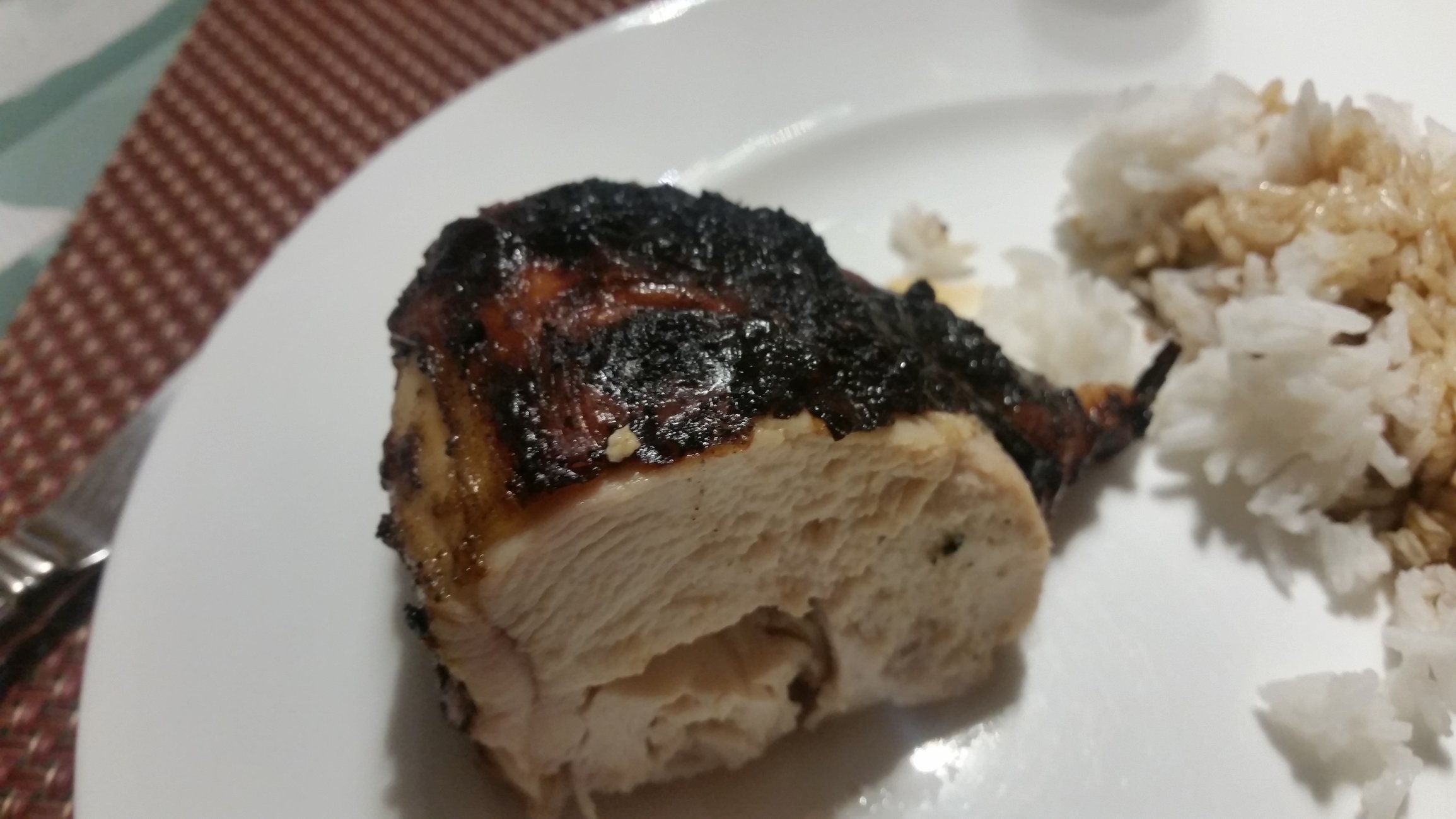And then used the jerk seasoning and wet jerk sauce seasoning on the chicken to make jerk chicken, grilled it (didn't have pimento wood, but read online that I can used soaked allspice beans instead, not sure it gave any smoke though)