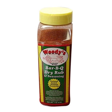 Woody's Bar-B-Q Dry Rub, especially since it's a product from my home state. It doesn't hurt that Sam's Club sells 22 ounces of it for under seven bucks. I do mix it 50/50 with garlic powder occasionally.