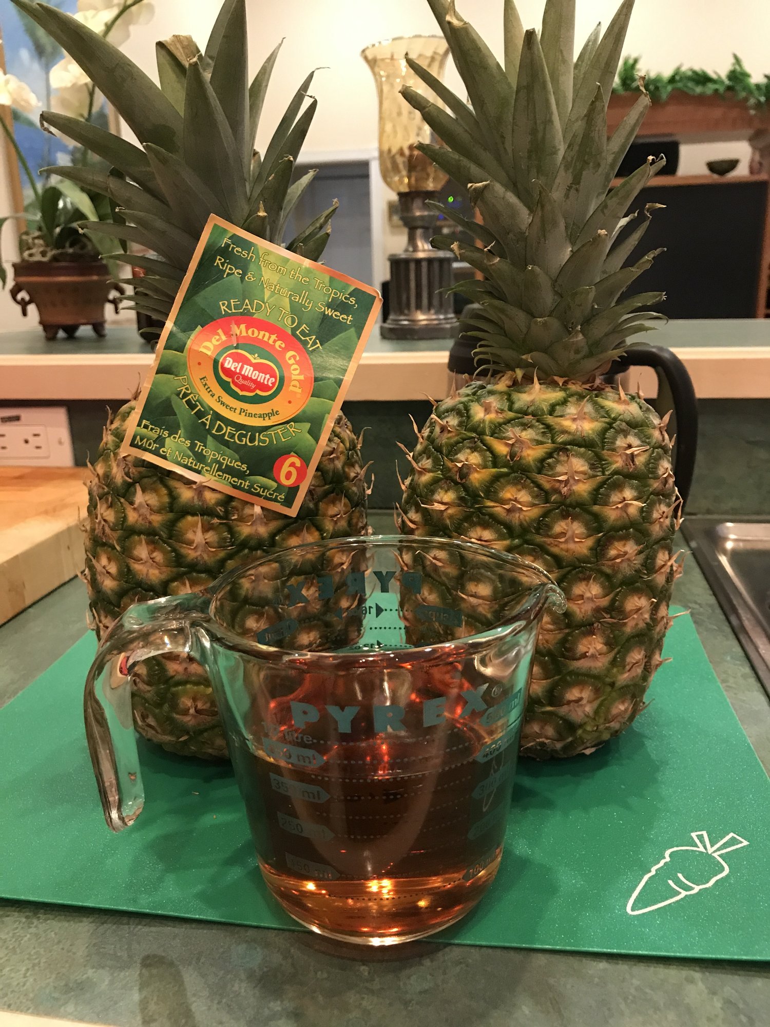 Picked up a bottle of JD Fire and two $1.29 Chiquita pineapples from Aldi, and some nice "price reduced for quick sale" aged ribeyes at Sam's. Will probably marinate a little bit longer too, throwing pics up late tonight or tamara.