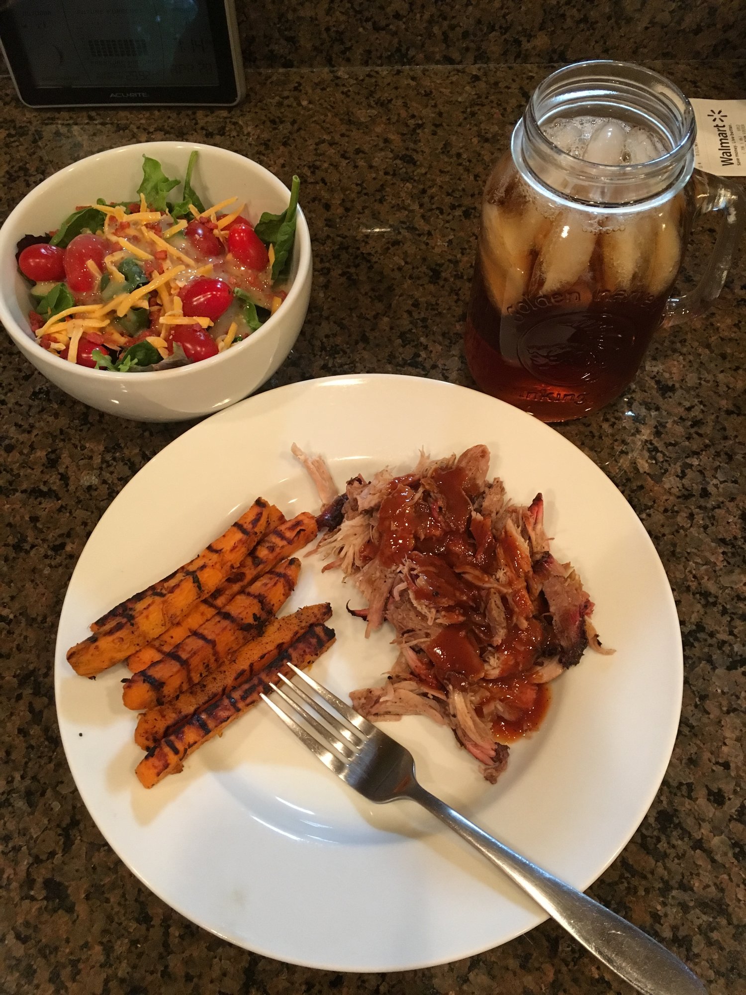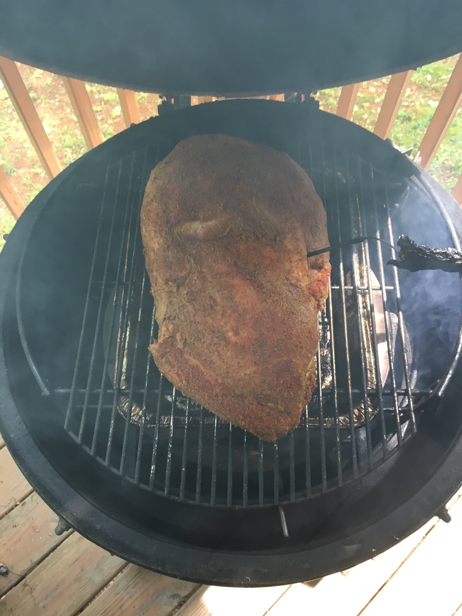 Snuck out of work around 1:30 to get the egg running and had the meat on by 2:30 then headed back to work. After quitting time, picking up the kids, and swinging by the grocery store the dome temp was right where I was aiming at 400. Pulled the meat at 202 around 6:30 to foil and rest. Fun cook and great supper! All in all I'm pleased with the results.