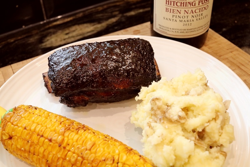 The end result was good, served with the sweetcorn and garlic mashed potato, Hitching Post Pinot Noir to wash it all down.