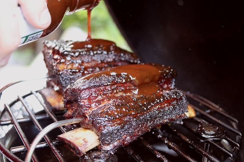 Tried some smoked beef shortribs over the weekend. Cooked in the MM starting at 150C/265F. Setup was a raised platform over a water container. I mixed the hickory chunks in with the charcoal, lit it and let the white smoke dissipate until I had the thin blue line. The shortribs were rubbed with Red-Eye Express. I spritzed them occasionally whilst cooking to stop the rub drying out.