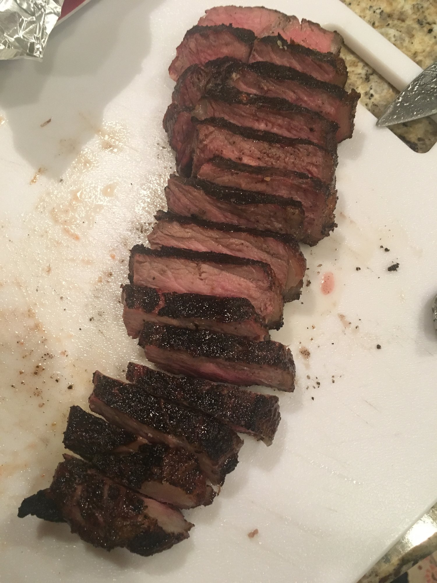 My brother came up to North Alabama to visit. Great weekend played a round of golf, might or might not have had a few adult beverages. Cooked some strips on Friday. Yesterday I smoked some meatloaf and a few eggs for breakfast this week. Also, the local seafood market had some fresh oysters. Smoked this Friday till they opened up and ate them raw. Last night I shelled them, put them on to smoke with some Gorgonzola crumbles. Sucky pics. But great food. Huntsville, Al LBGE