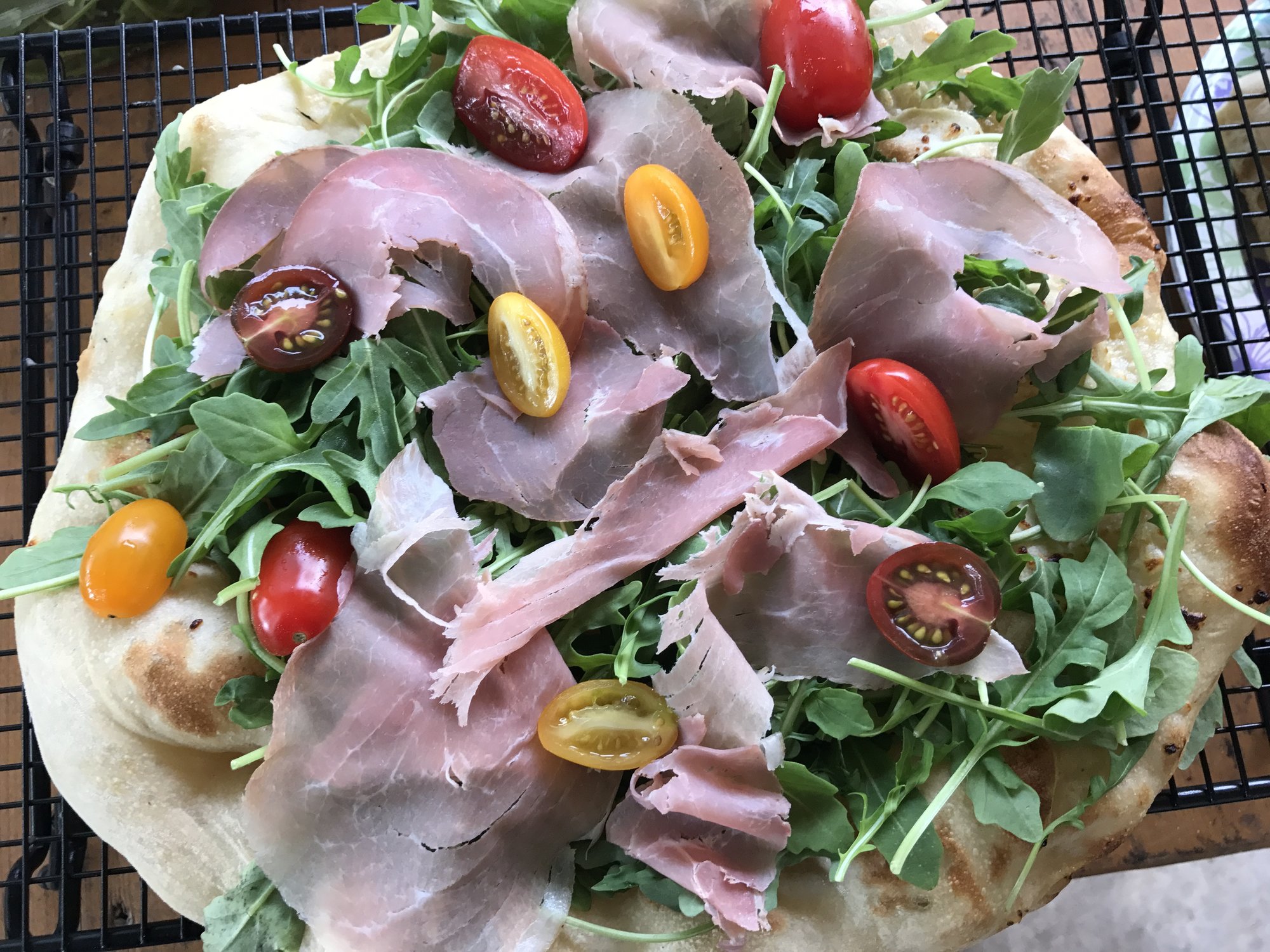 Doing some carb loading before attempting the Spartan Race tomorrow. Saw this recipe in F&W and had to try it. I was skeptical that the lemon slices with peel and all would be okay to eat, but they came out tender and delicious. Really good pizza, the lemon flavor infused the entire pizza. I sliced the lemon as thin as I could by hand, next time I'll use the mandolin to get even thinner. Ingredients: olive oil, mozzarella, pine nuts, lemon slices, basil.