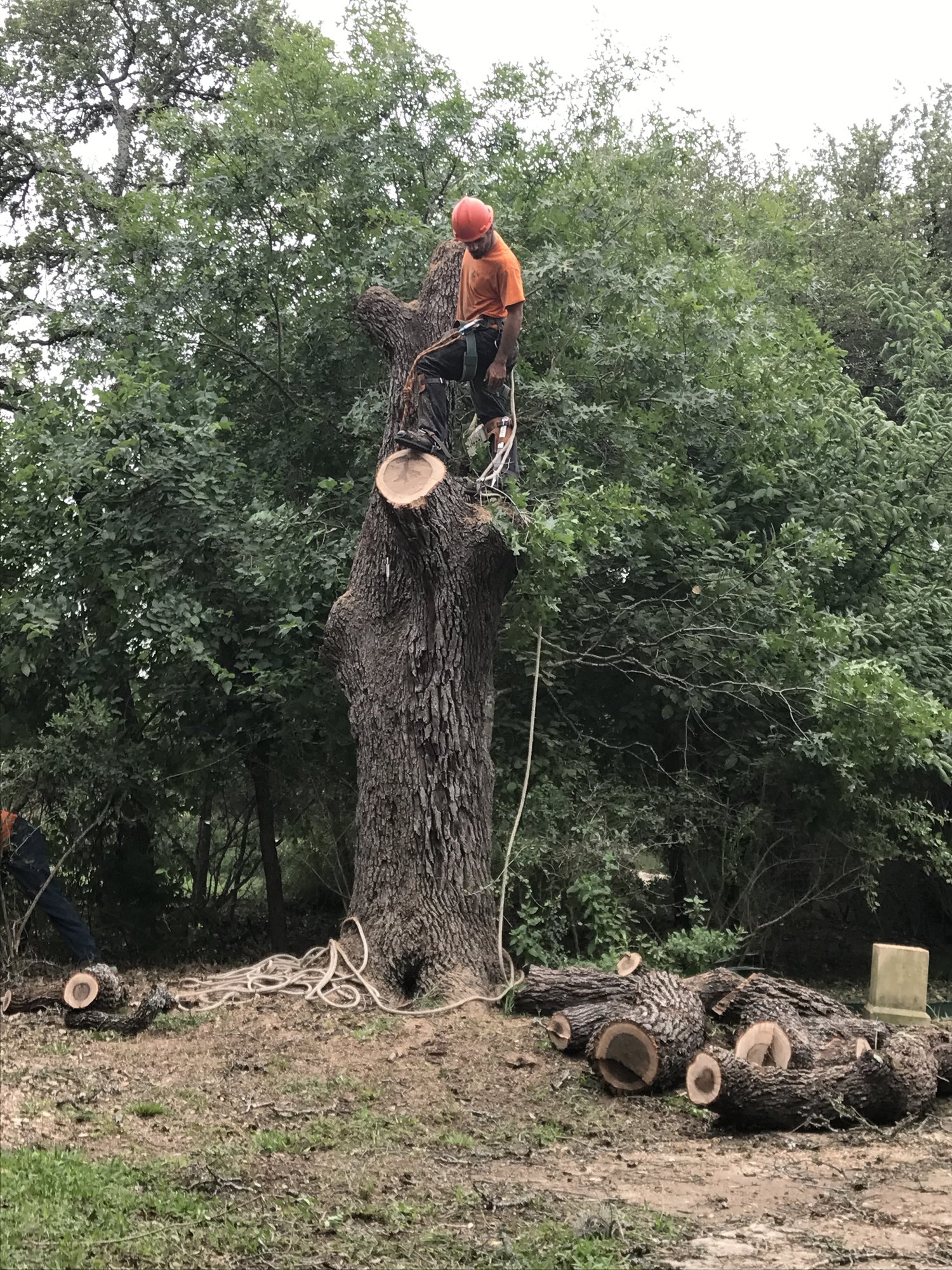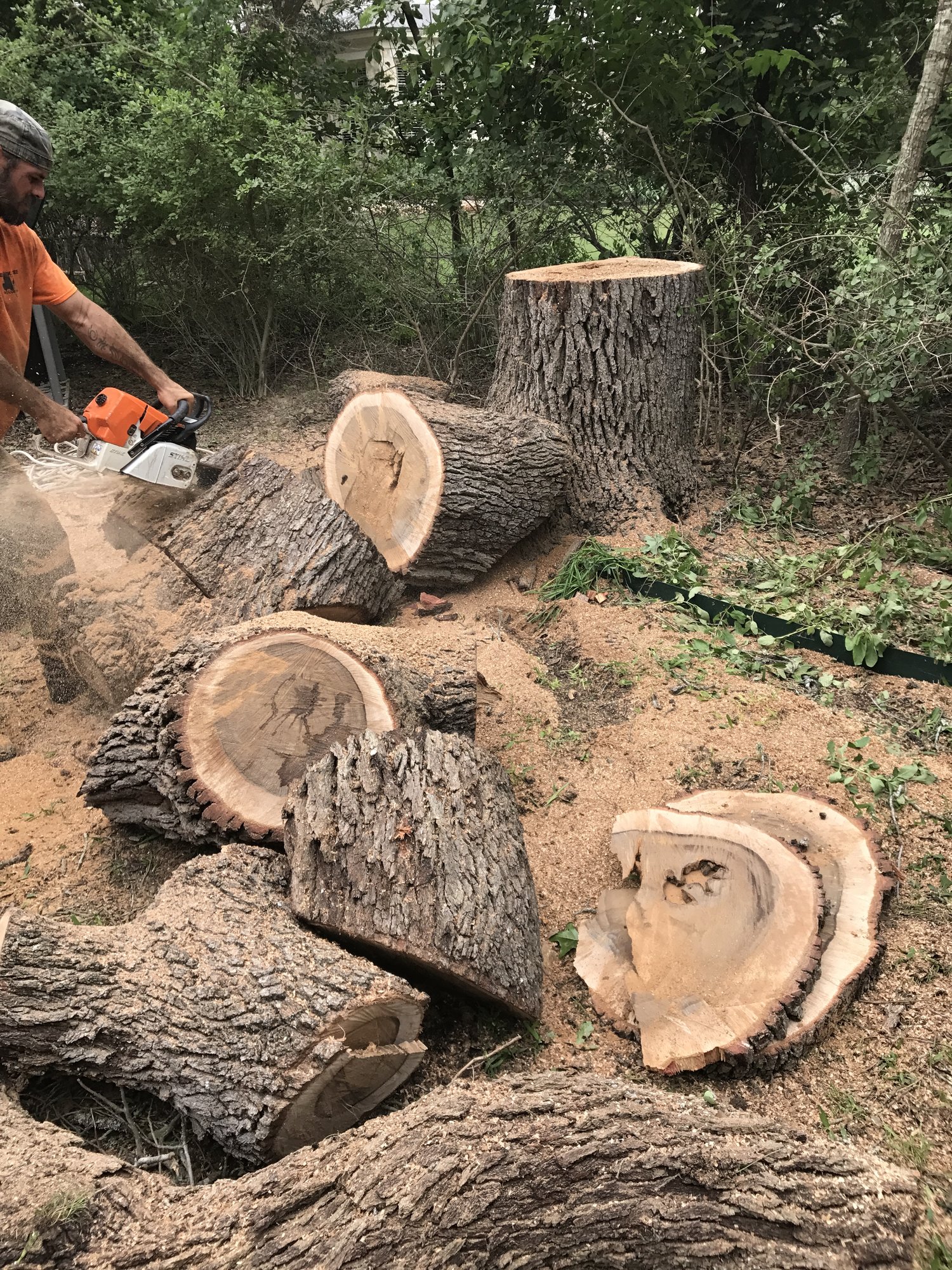 I too know the pain. I lost this big oak to something, but not oak wilt as other oaks nearby have not been infected. I counted 227 rings on the remaining stump. Note the dude in the yellow shirt clear at the top. He had arms like Popeye!