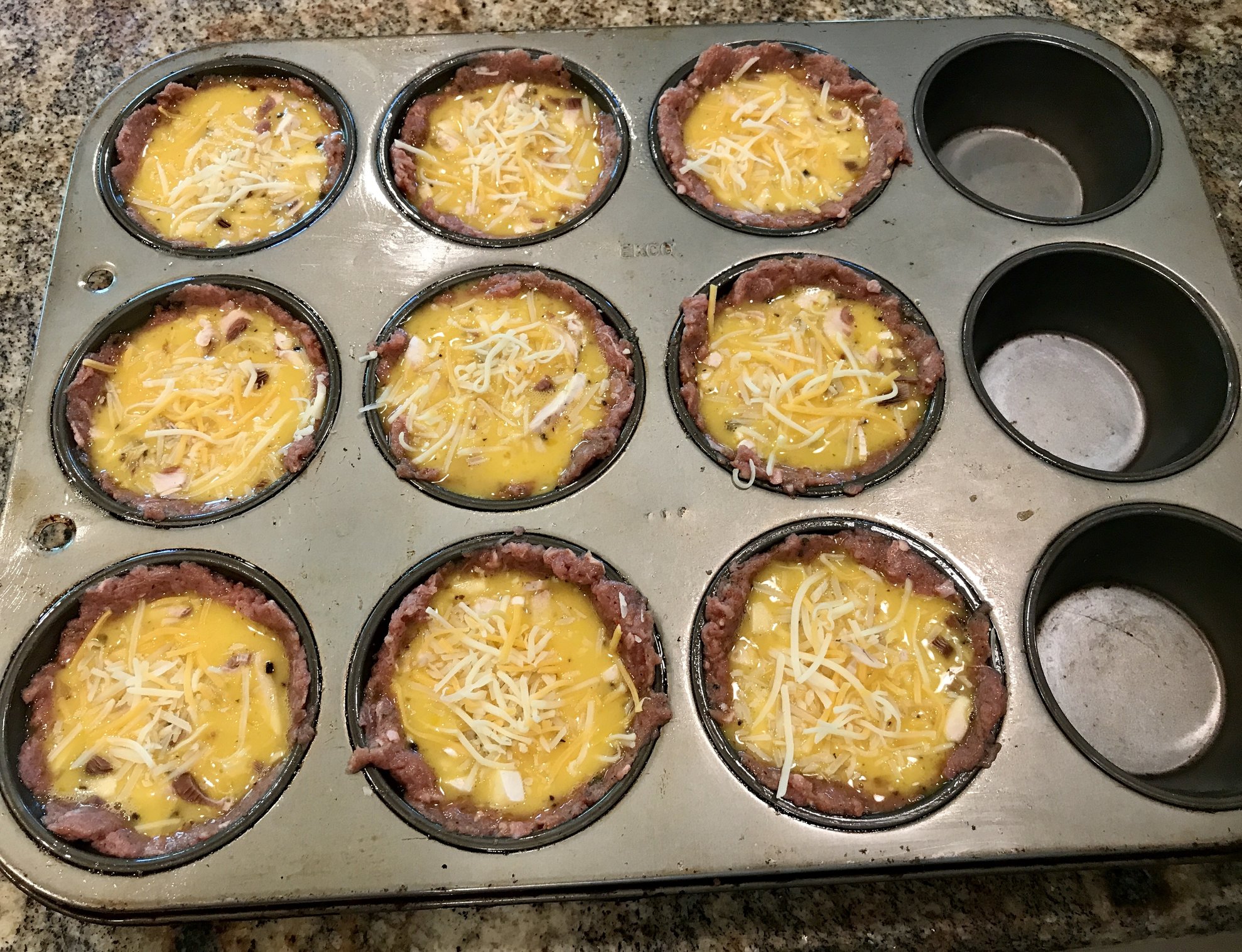 So for the breakfast portion we have turkey sausage smoothed out in cupcake tins to make the shell to hold the eggs