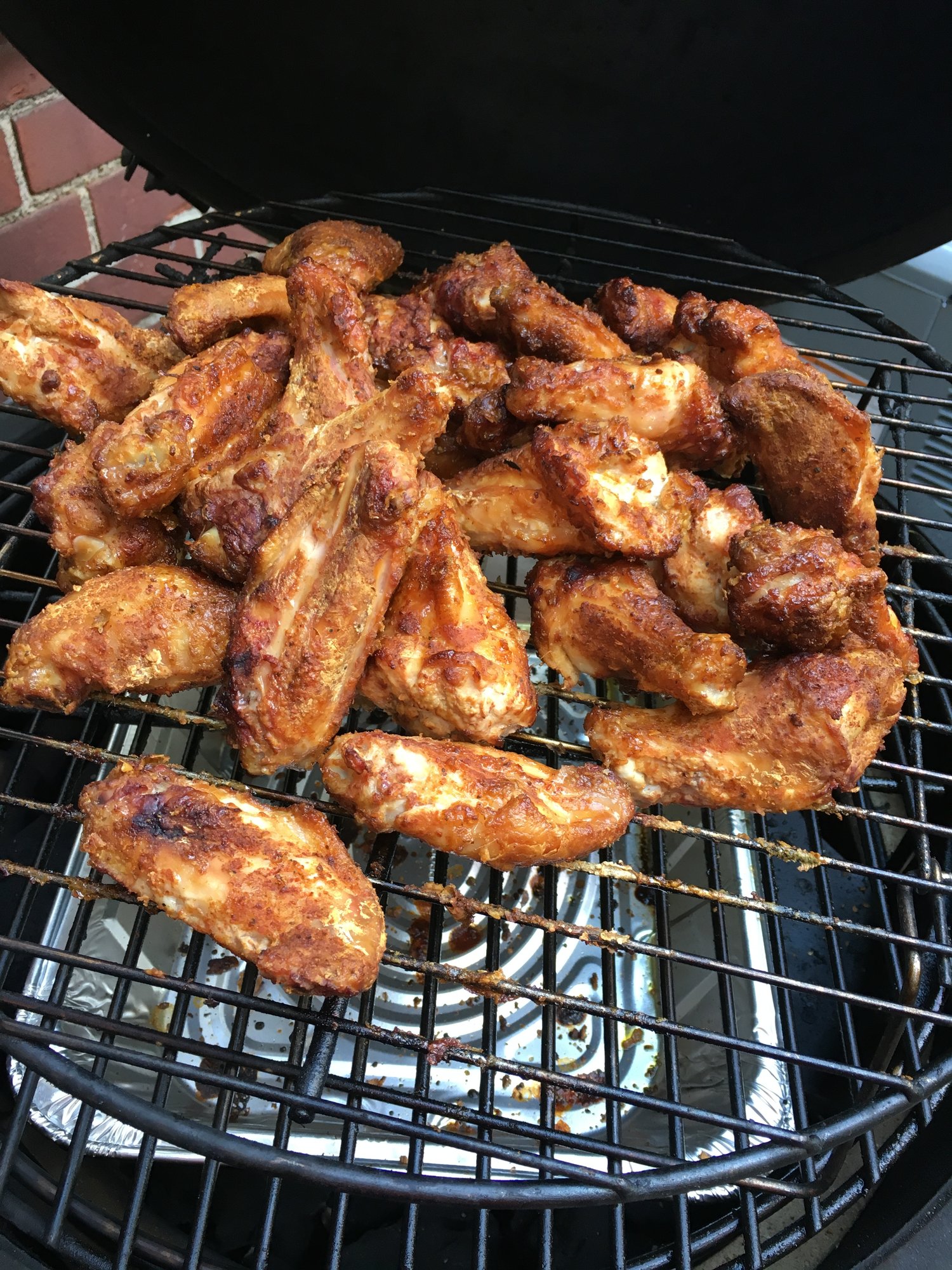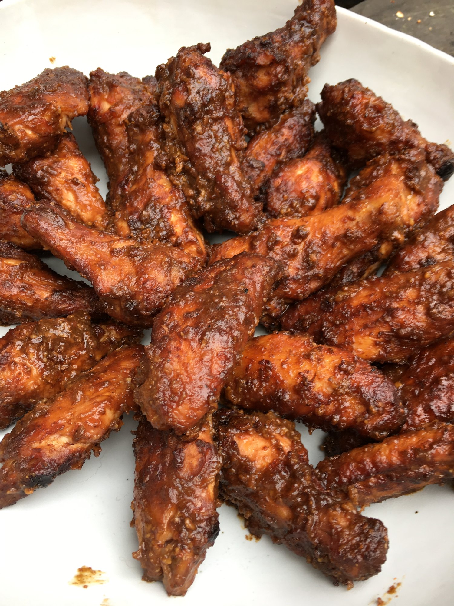 Next up were wings. Decided to try something different in technique than my usual 400 indirect for an hour. This time, 250 indirect for just over two hours, and was surprised at how evenly brown and crispy they got...then I tossed in a tamarind glaze, back on to set, and serve.