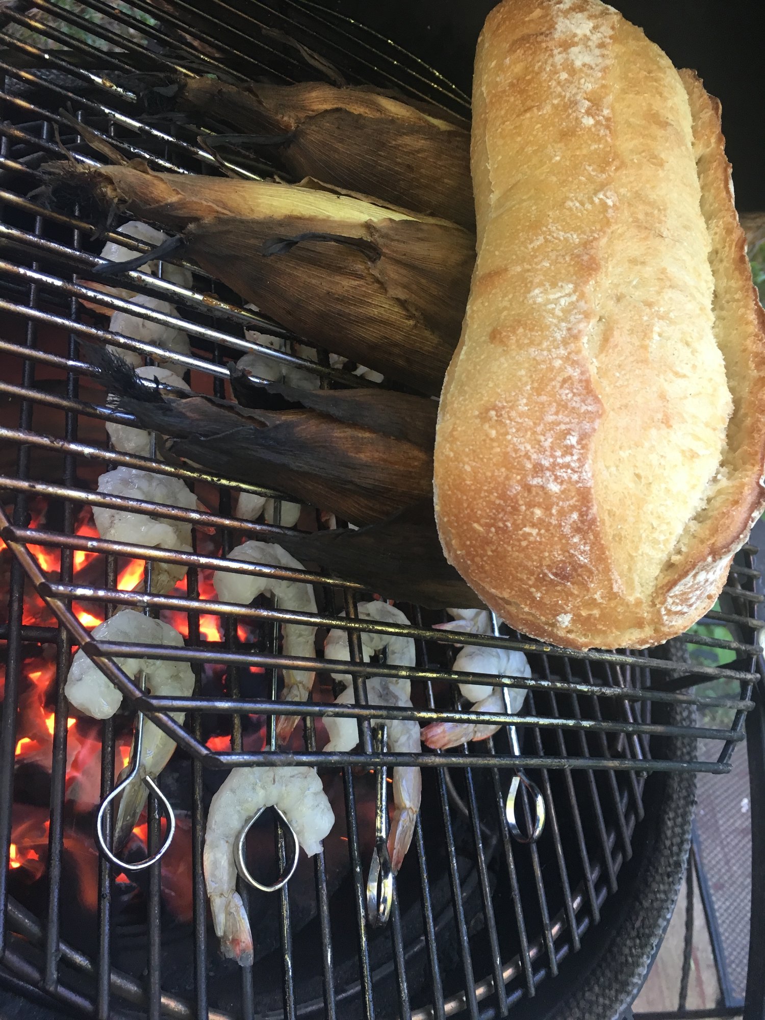 Well I think we all did a fair amount of time cozied up to the flames this weekend. I figured I would just go ahead and lump everything together in one post. First, Friday was some shrimp, corn, potatoes and garlic bread.
