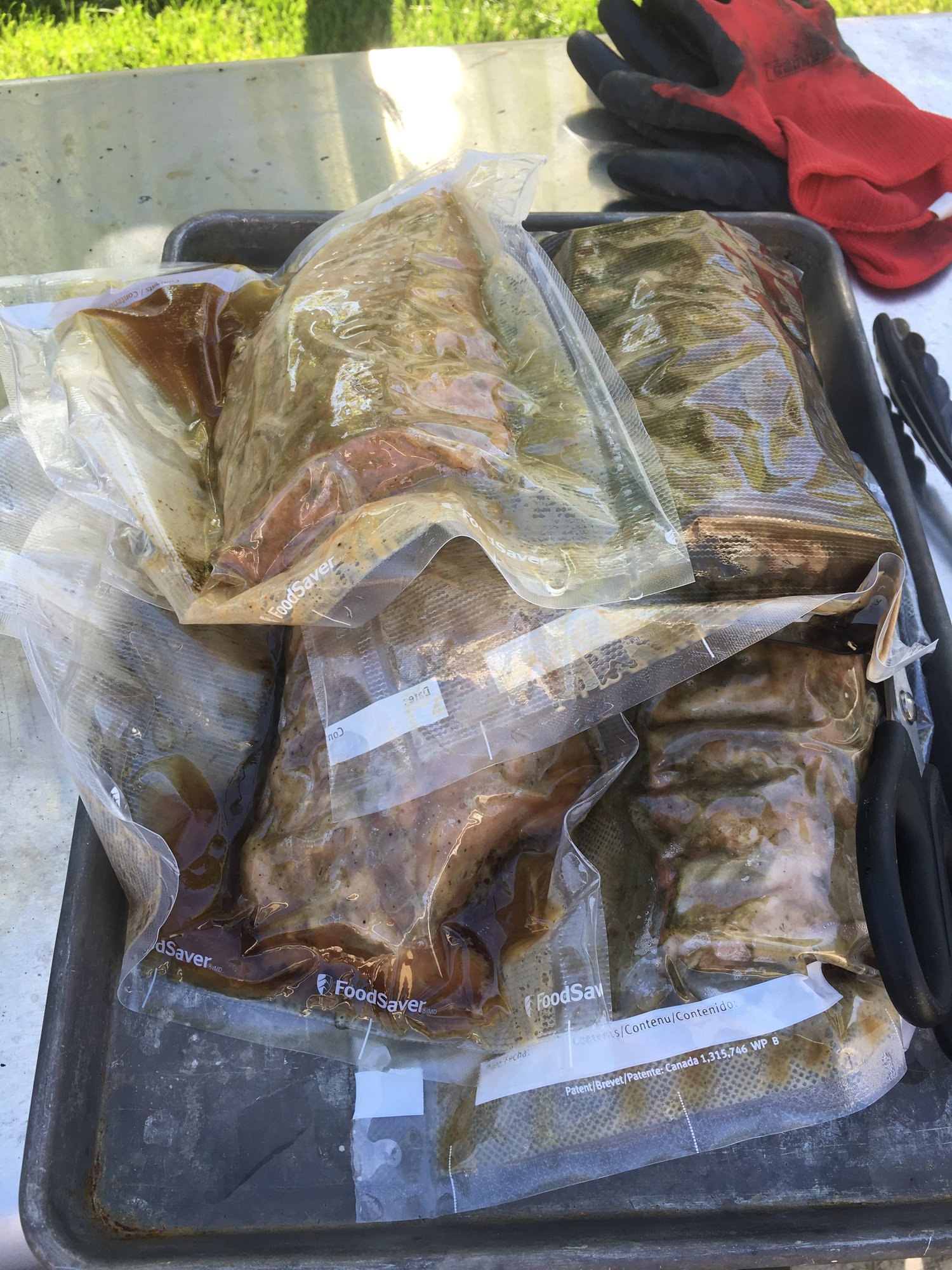 If you consider Sous Vide boiled that is. I cooked these using the Anova for 22 hours at 150. Then smoked them for an hour, followed by a sauce and slight sear after saucing. Man the XL gets from 225 to 550 in like 2 minutes with the vents open. These were some of the best ribs I have ever had. Tender and juicy. The off color out of the bag still freaks people out tho.