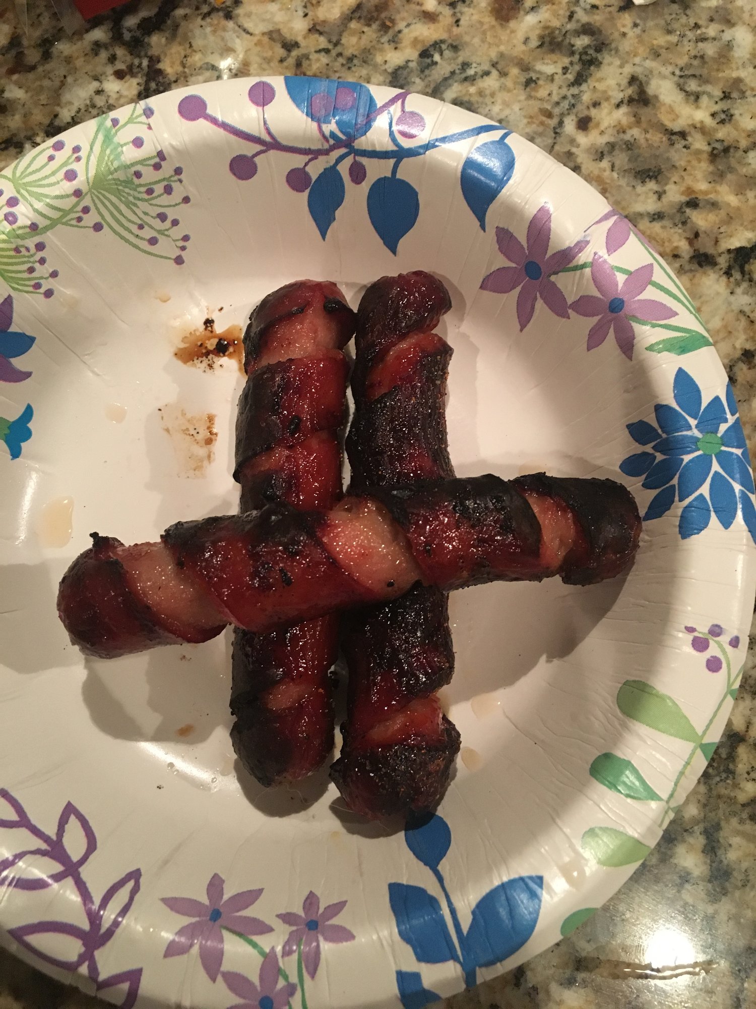 Bacon wrapped dogs. That's advanced class my manWhich came first the chicken or the egg? I egged the chicken and then I ate his leg.