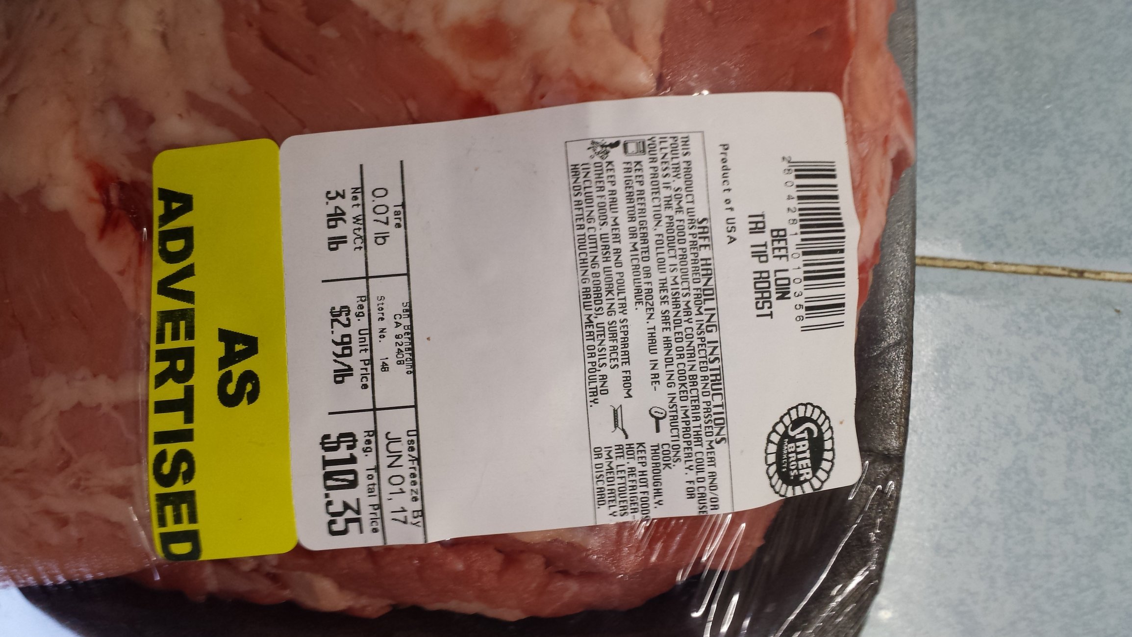 Beautiful! Love tri tip. The ones I find here are in cryo and are about 3lbs. Usually about 4.99/lb for choice.